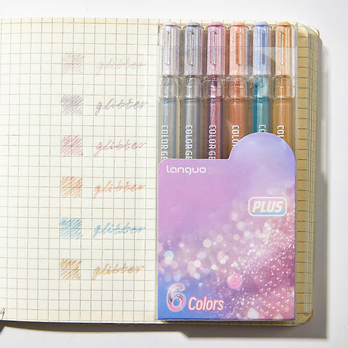 SHANDS 6 Colors Glitter Gel Pens Set, 1.0mm Medium Point, Quick-Drying Ink - Ideal for Cardstock, Journals, Drawing