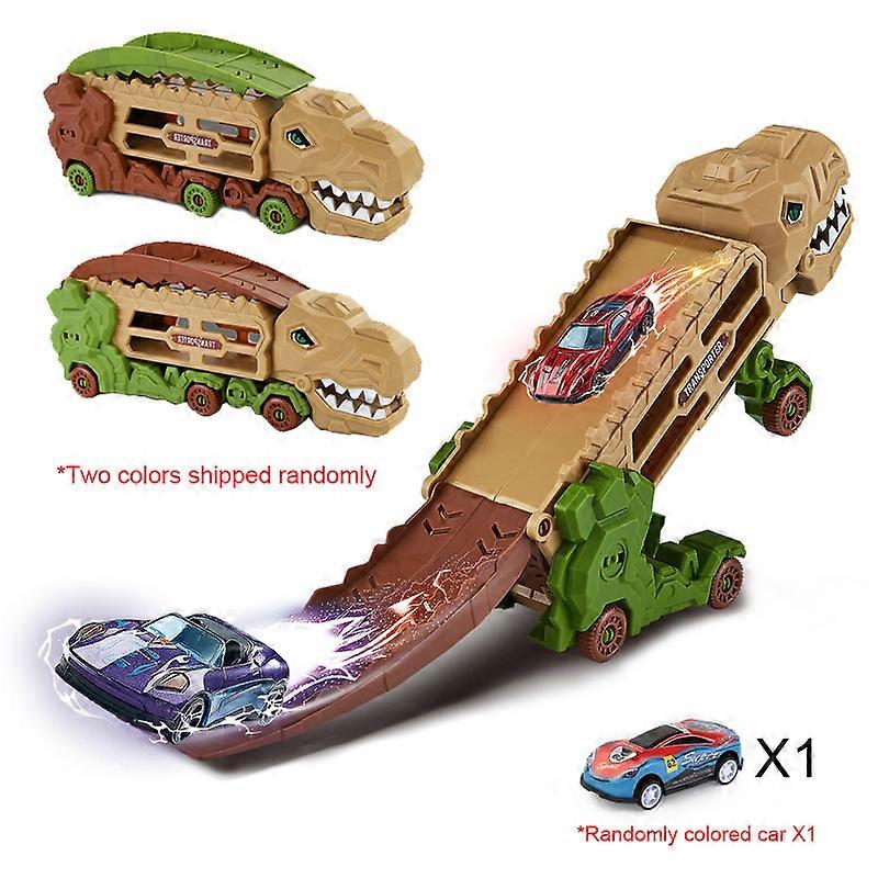 Transport Dinosaur Truck with Foldable Sliding Race Track, Transforms into Standing T-Rex & Trike, Best Birthday Gift for Kids
