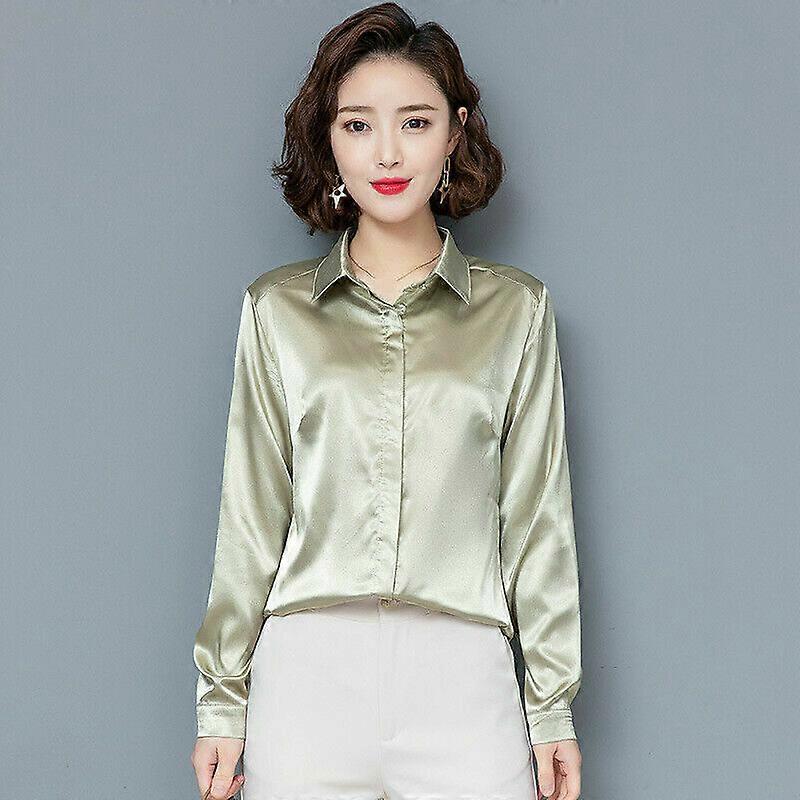 Ladies Satin Shirt Blouse Tops Long Sleeve Business Formal Shiny Elegant Casual