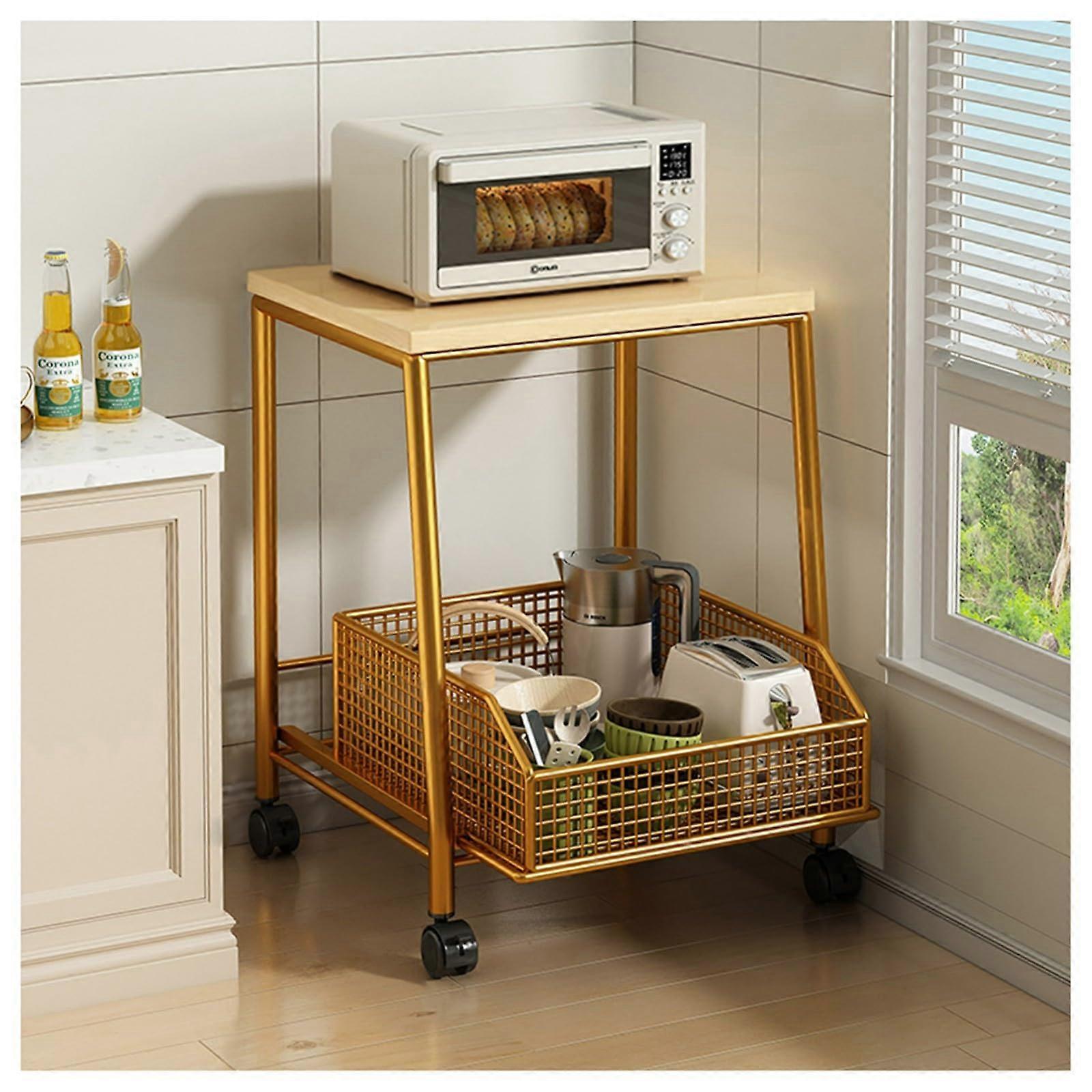 Gold Rolling Kitchen Cart with PullOut Basket, MultiTier Shelves, SpaceSaving Baker's Rack on Wheels