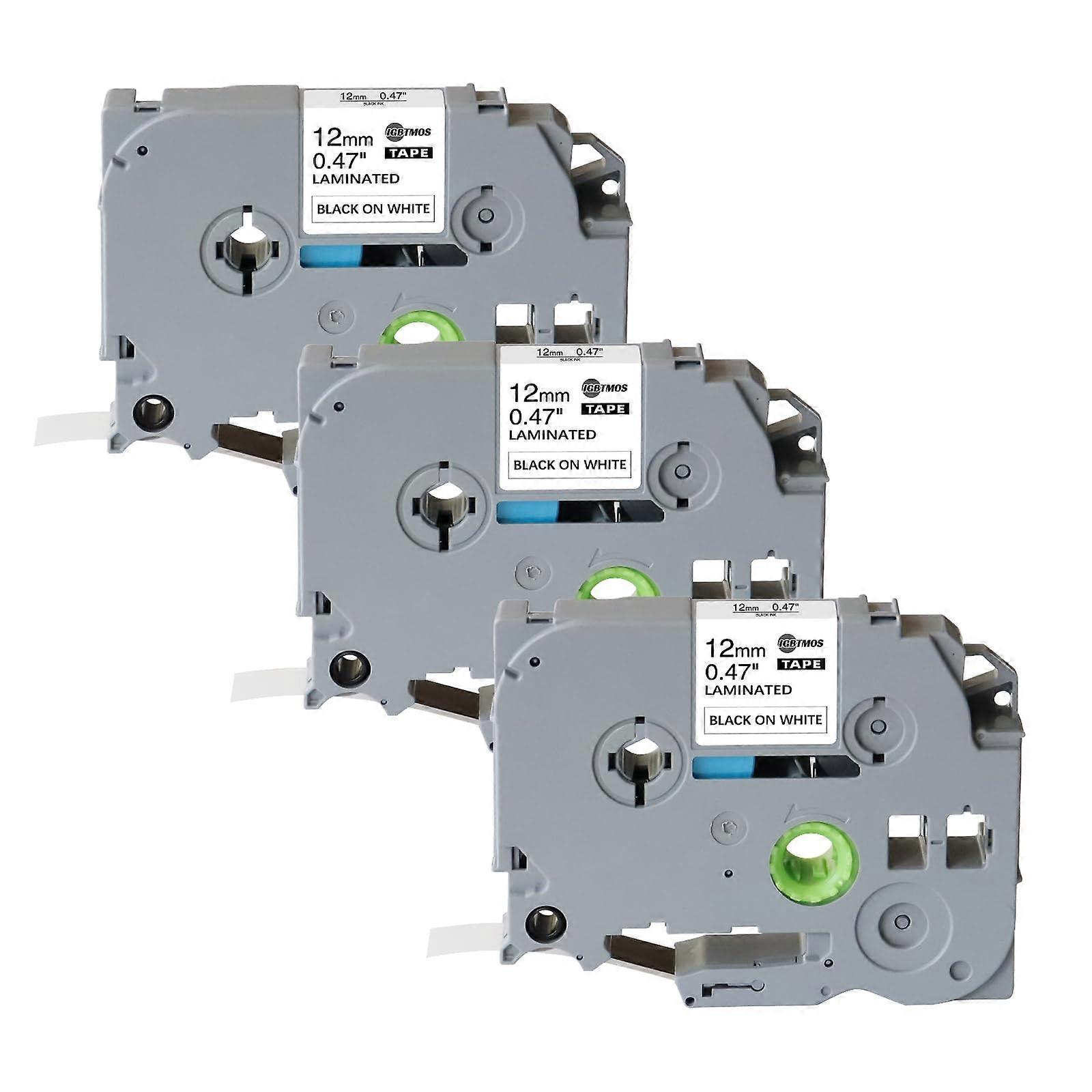 Label Maker Tape TZe231 12mm Black on White Waterproof Fadeproof for Brother PTouch 3 Pack
