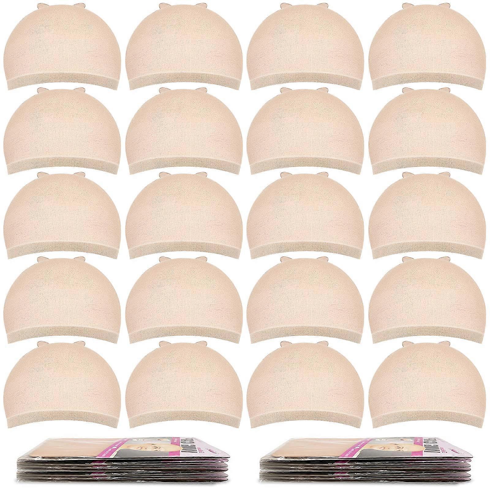 20 Pcs Beige Nylon Wig Cap for Women, Breathable Stretch Fit with Secure Elastic Band