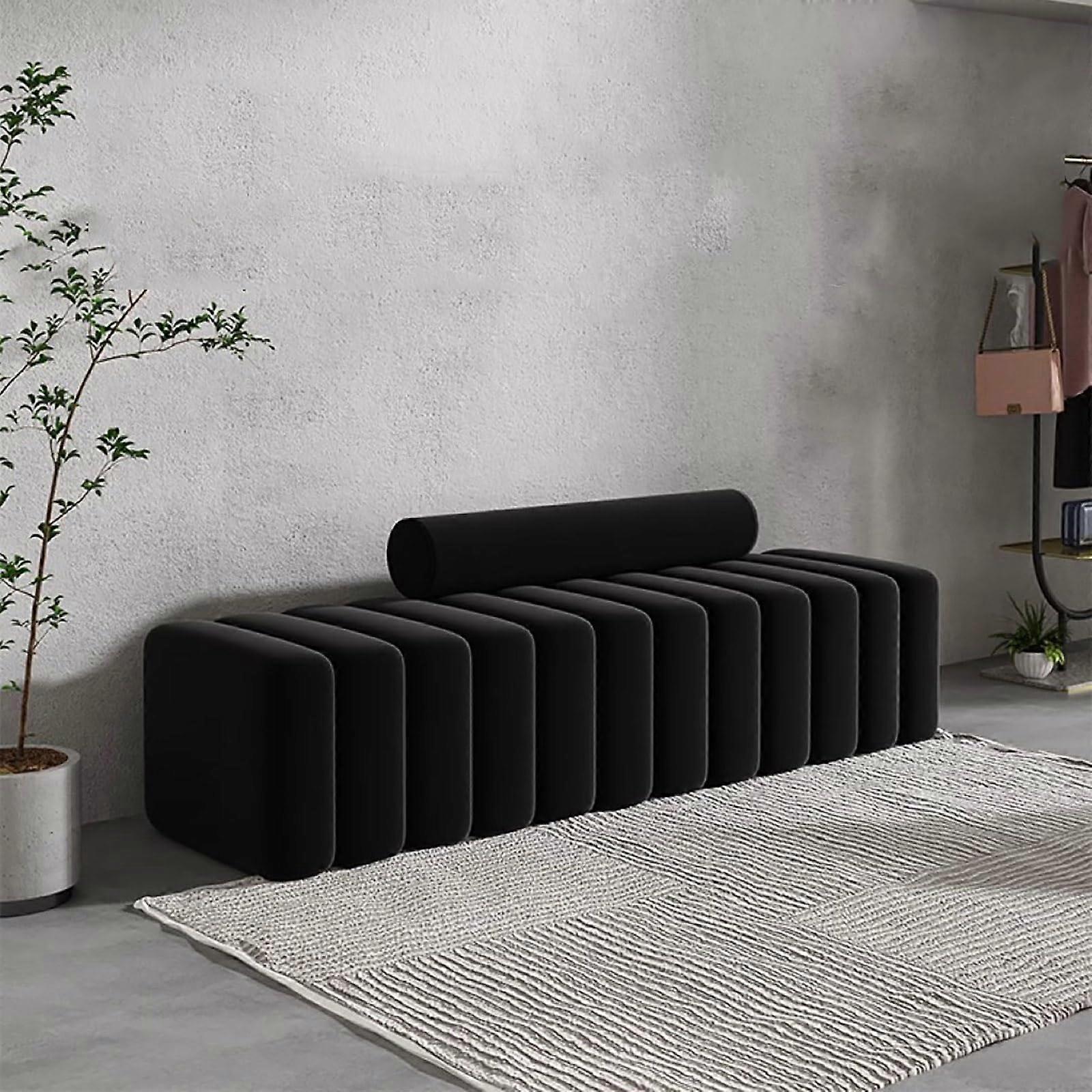 Velvet Entryway Bench with Storage, Upholstered Shoe Bench with Solid Wood Frame, Black 100x40x42cm