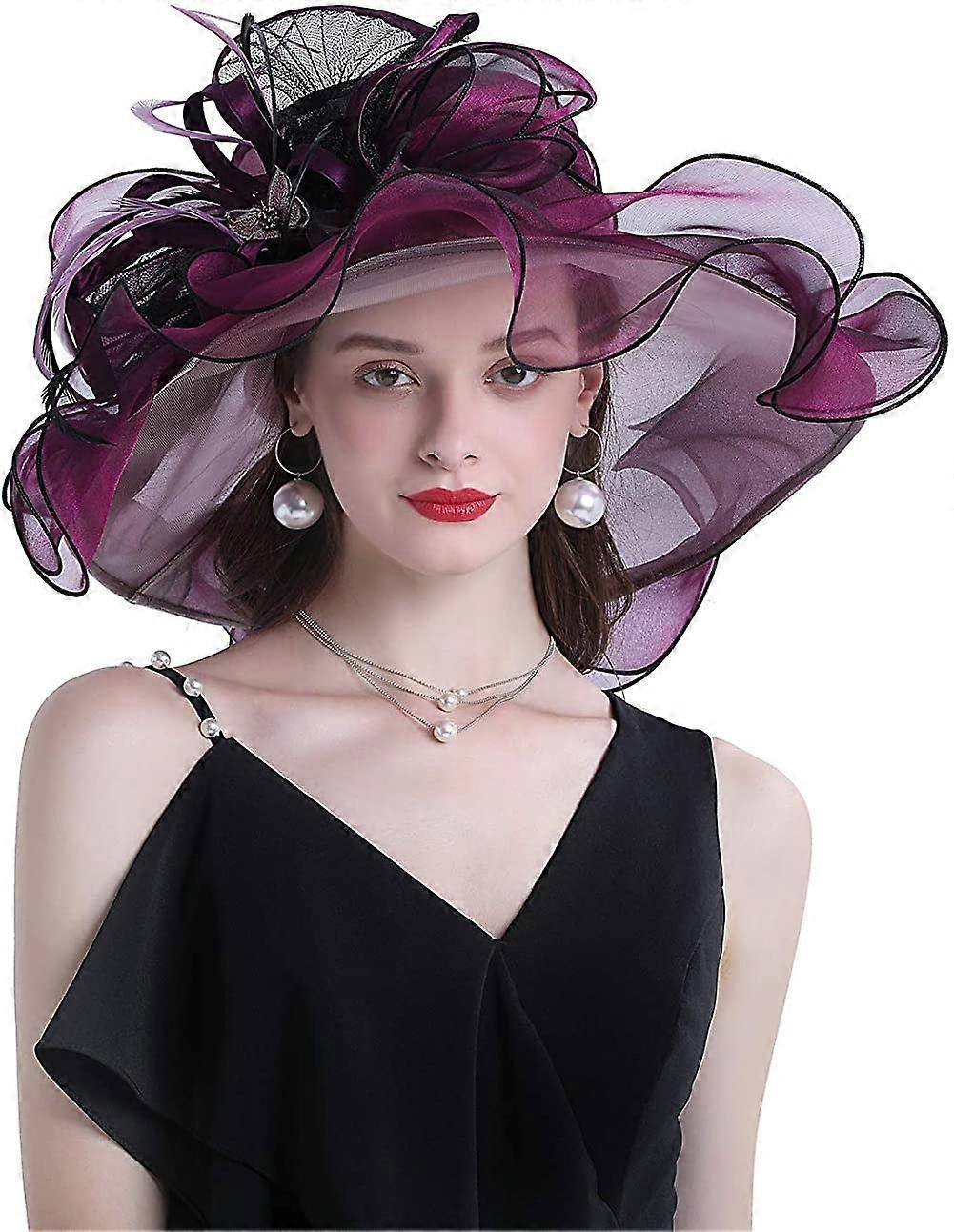 Women Hats Organza Butterfly Decoration Wide Brim Occasion Event Derby Church Dress Sun Hat