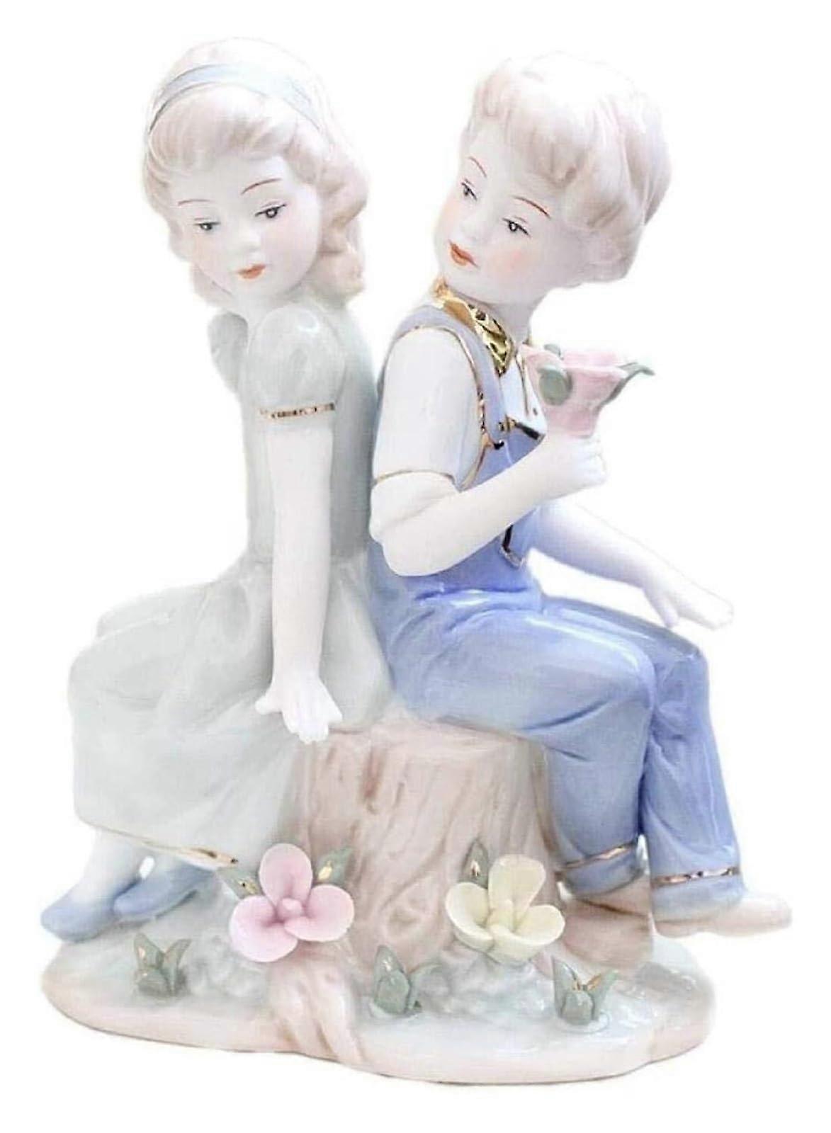 Rustic Ceramic Bathroom Accessories Set with Retro Boy and Girl Figurines Victorian Countertop Decor