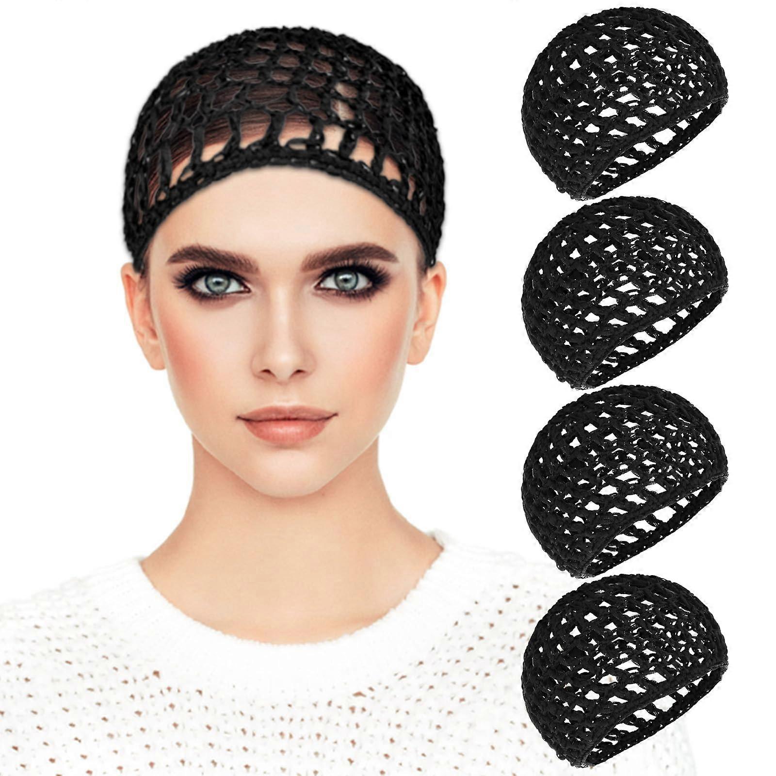 4 Pack Crochet Hair Net for Sleeping, Breathable Mesh Snood Bonnet, Silk Press Overnight Cap Black