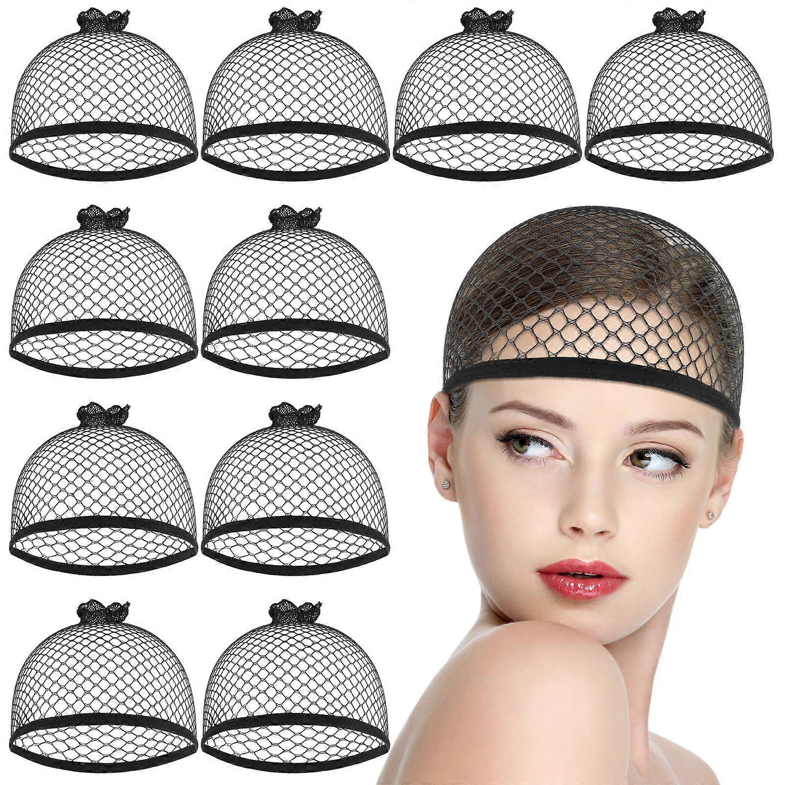 10 Pcs Black Mesh Wig Caps for Women Breathable Stretch Nylon Net for Lace Front Wigs and Cosplay