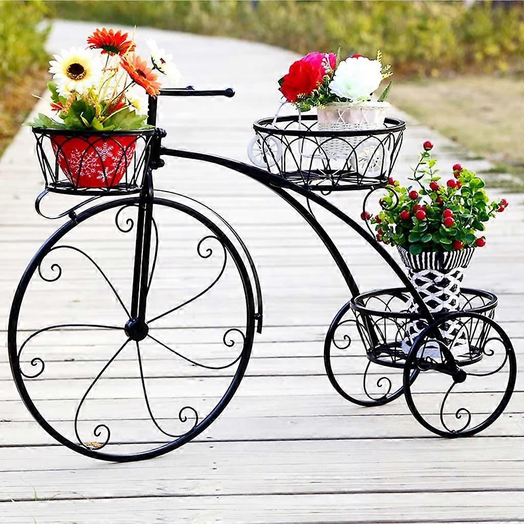Black Metal Decorative Tricycle Plant Stand for MultiLevel Flower Pot Display in Garden or Patio