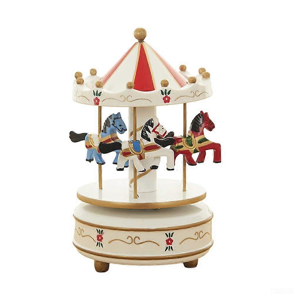 Carousel Music Box Vintage Wooden Pink Horse WindUp Design with Rotating Carousel Horses