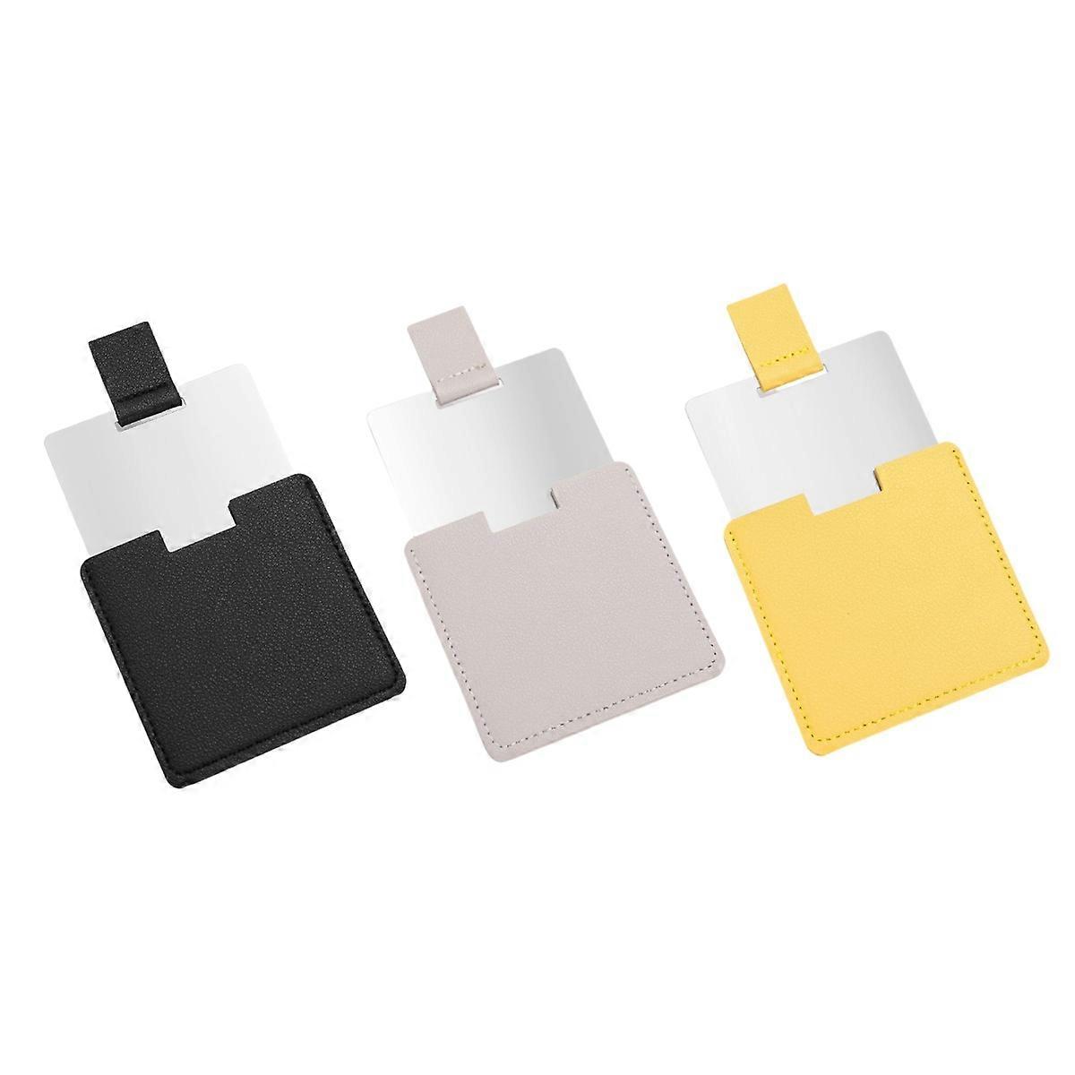 3pcs Stainless steel card mirror with PU leather cover Square ultra-thin portable Drop resistant makeup mirror