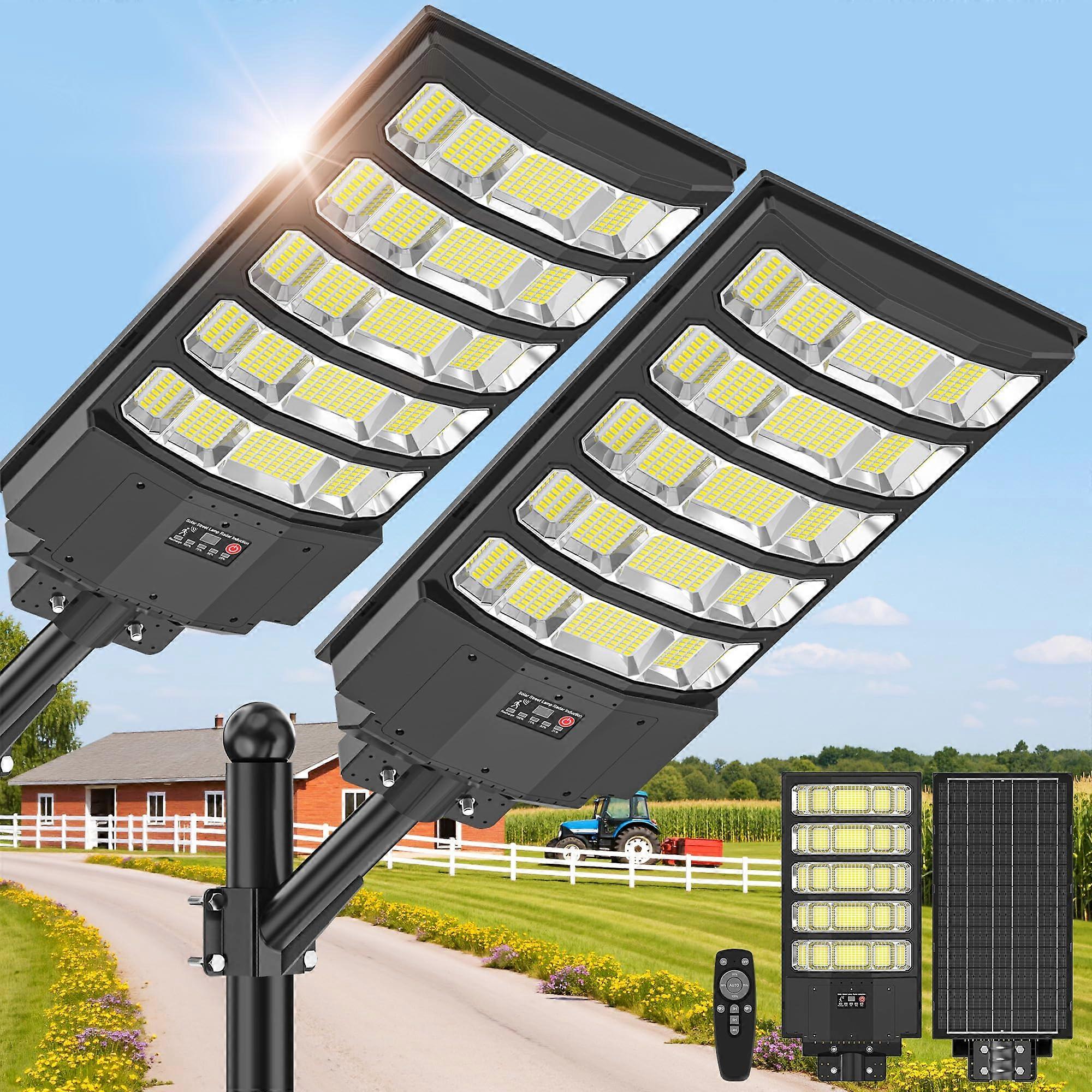 10000W Solar Street Lights Outdoor with Motion Sensor, IP66 Waterproof Dusk to Dawn Parking Lot Lights 2Pack