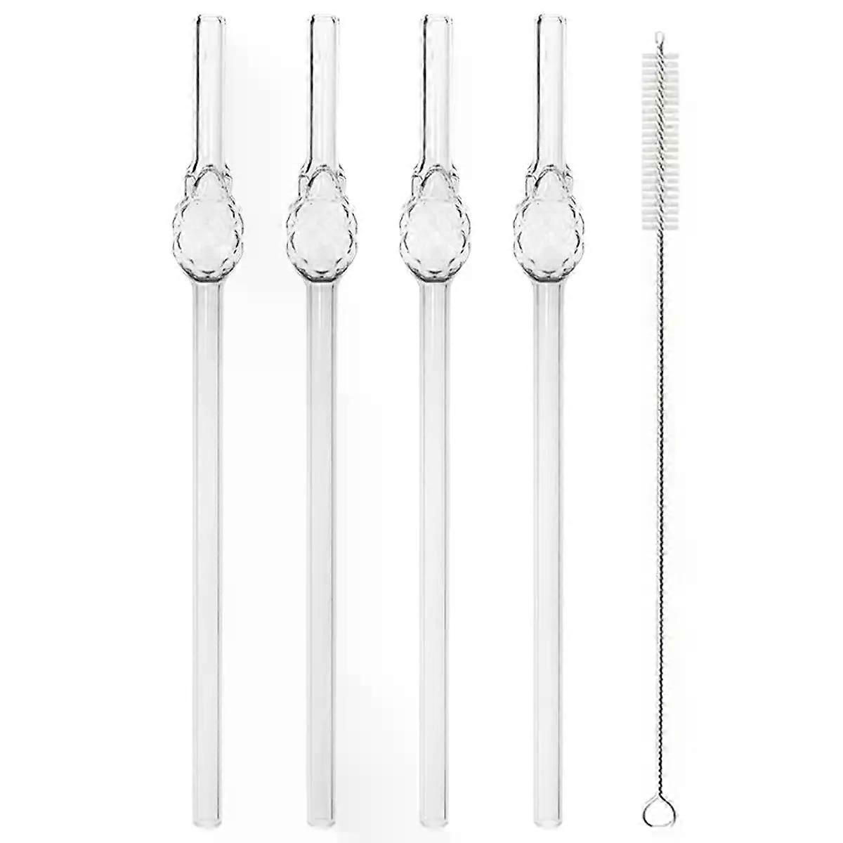 4pcs High Borosilicate Glass Drinking Straws Set Milk Shake Straw with Brush Pineapple Shape Straw Set Party Bar Drinkware Tool