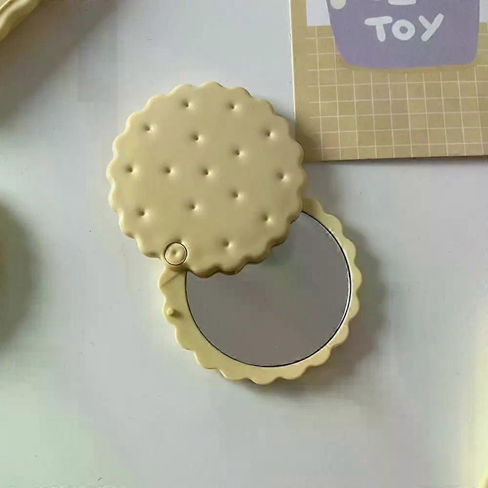 Mini Biscuit Hand-Held Mirror Portable Cheese Biscuit Design Biscuit Make-Up Mirror Cute Folding Biscuit Pocket Mirror Travel