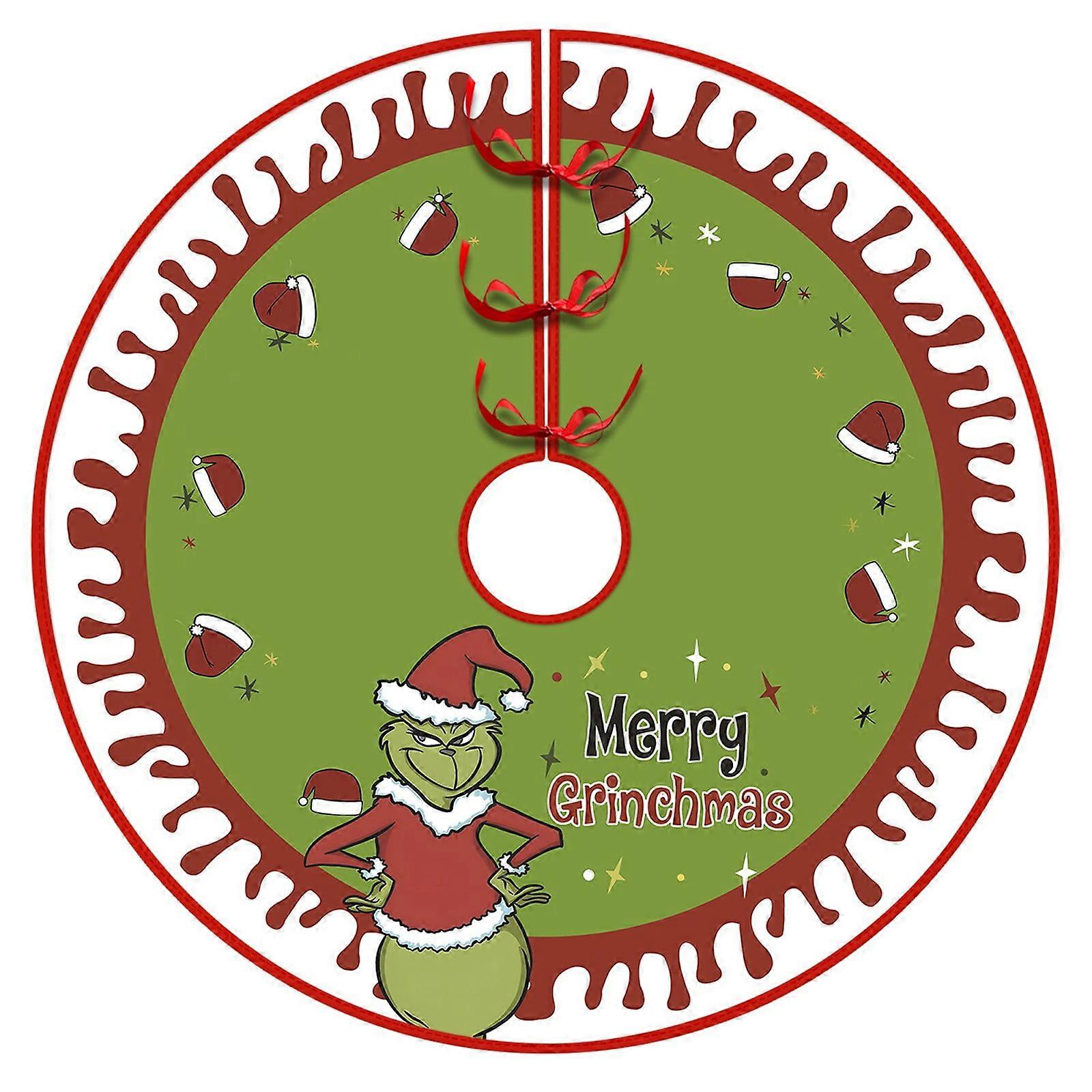 Grinch Themed Christmas Tree Skirt, 36-Inch with 3 Fixing Straps & Thickened Design to Prevent Sap Dripping, Fits 6-Foot Trees
