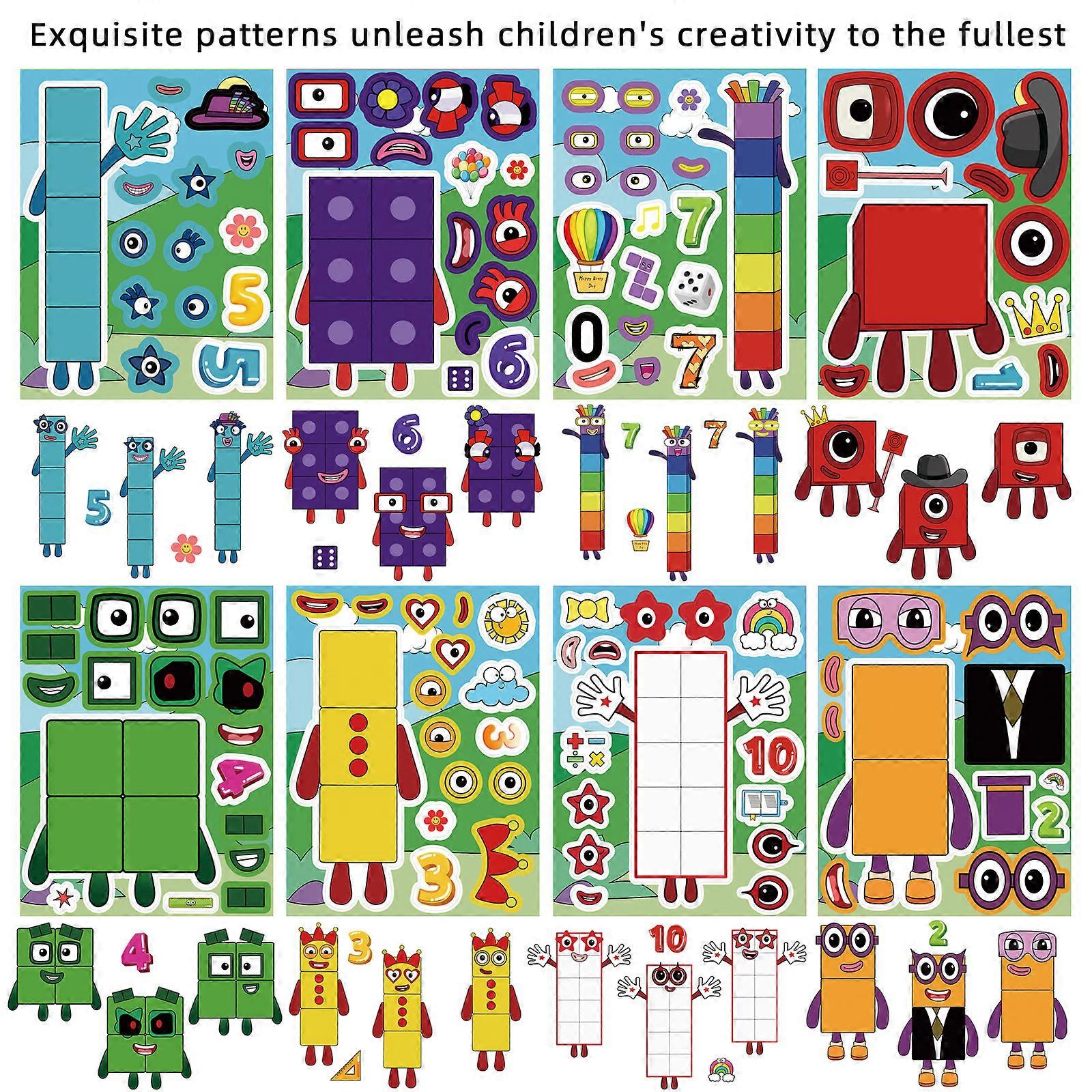 8/16/24 SHEETS Digital Building Blocks Cute Puzzle Stickers Cartoon Building Blocks Children Stationery Decor DIY Face Stickers