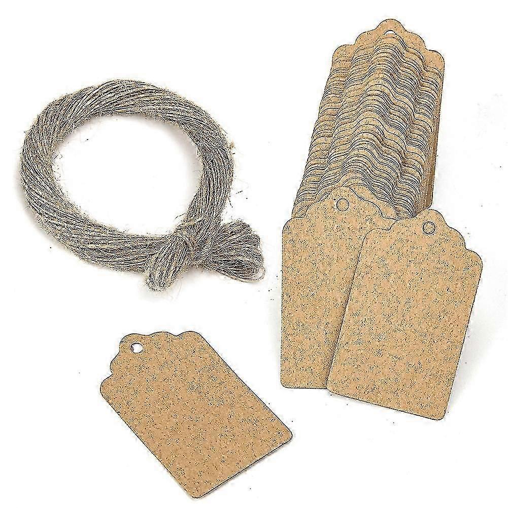 Pack Of 100 Scalloped Kraft Paper Gift Tags, Brown, 4 X 7 Cm, With TwineGOOD