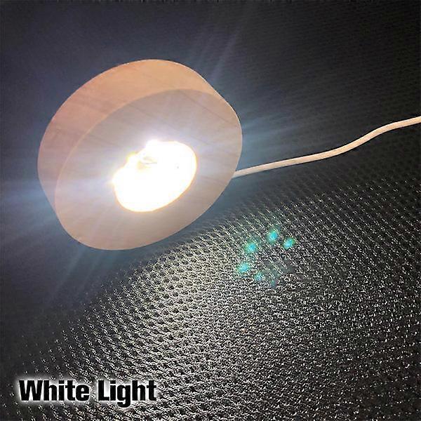 Wooden LED Light Display Base Crystal Glass Resin Art Ornament White Light
