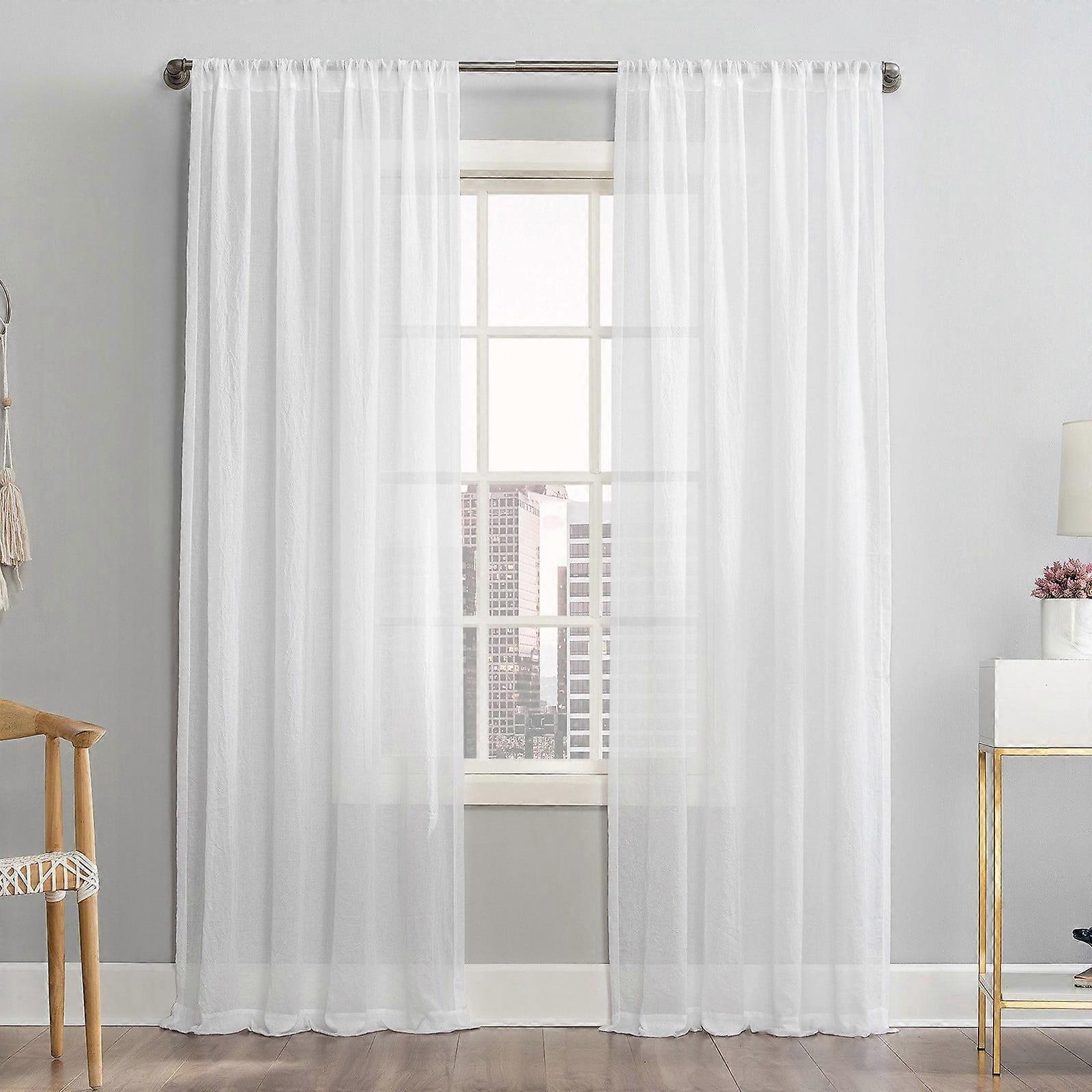 Leott White Sheer Curtains 54x84 Inch, Linen Look Voile, Set of 2 Panels for Living & Dining Room