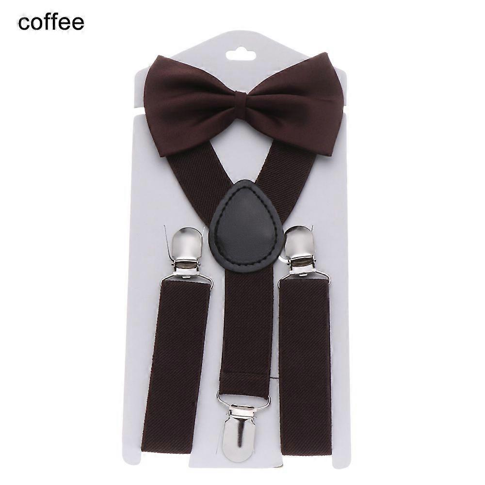 Kids Elastic Scompenders Bow Tie set Matching Tuxedo Suit Unisex Boy Girl Bowtie Wedding Costume Adjcomtable Y-Back Brace Belt