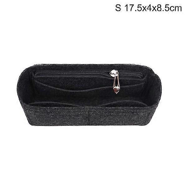 Multi-Pocket Women Insert Bag Handbag in Felt Fabric Black Black S
