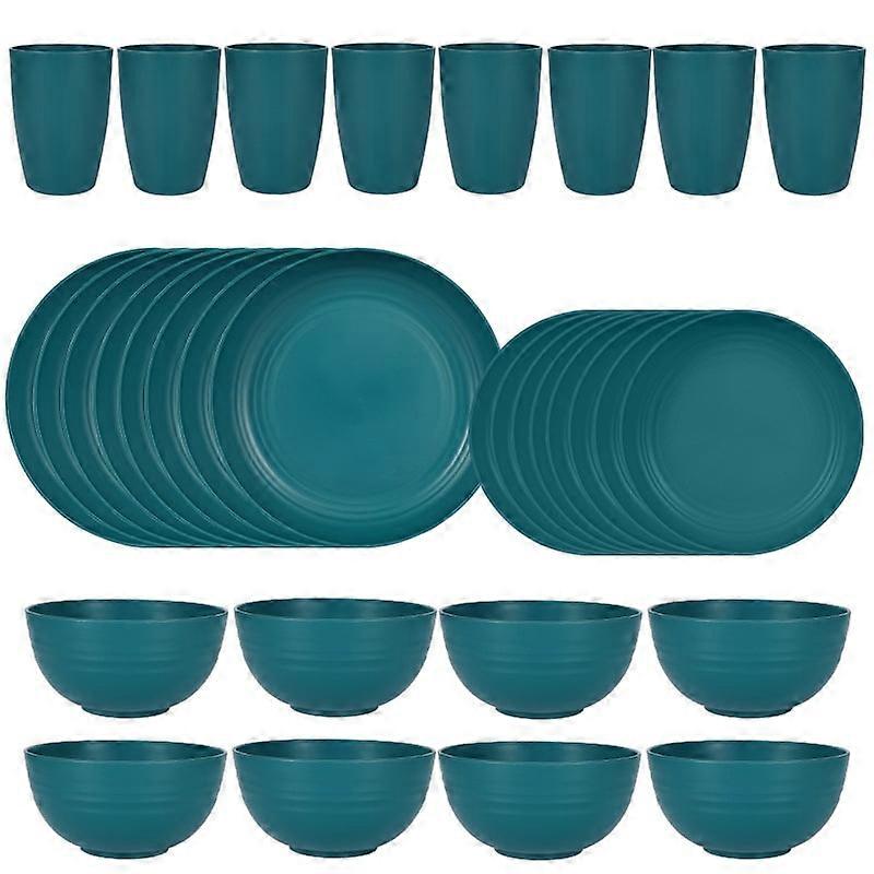 Namzi 32pcs Wheat Straw Dinnerware Set, Plates & Bowls for 8, Camping, Dishwasher Safe, Dark Green