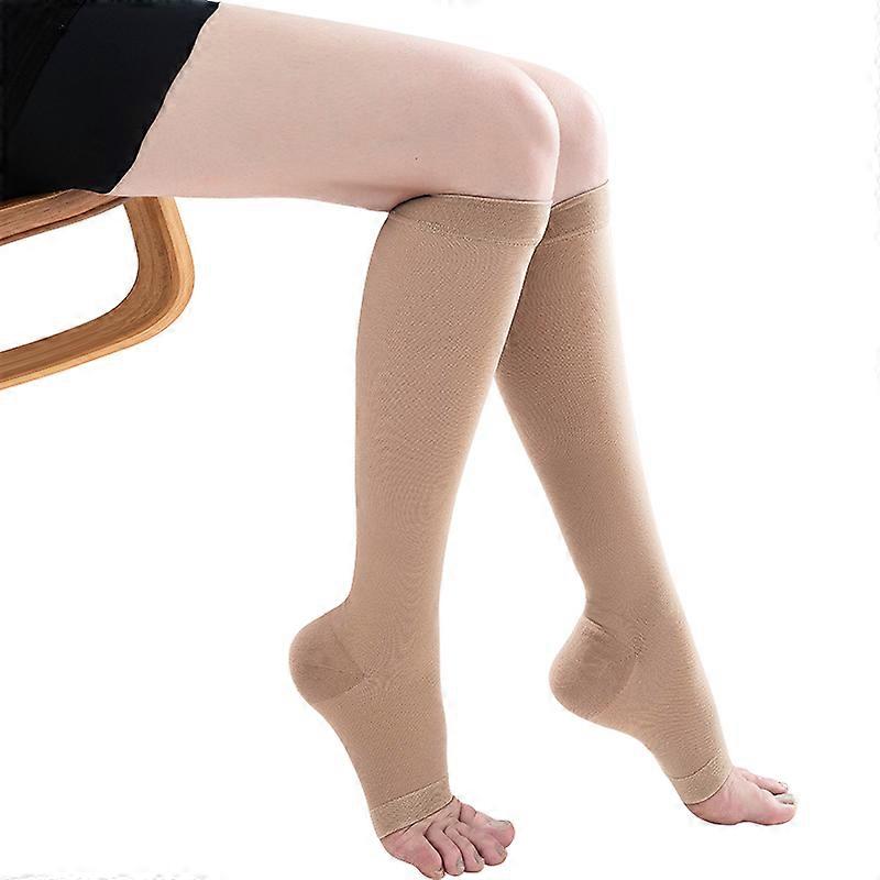 1 Pair Medical Compression Calf Sleeves 3 Levels Pressure Open Toe Breathable Varicose Vein Sports Running Socks 30-40 mmHg