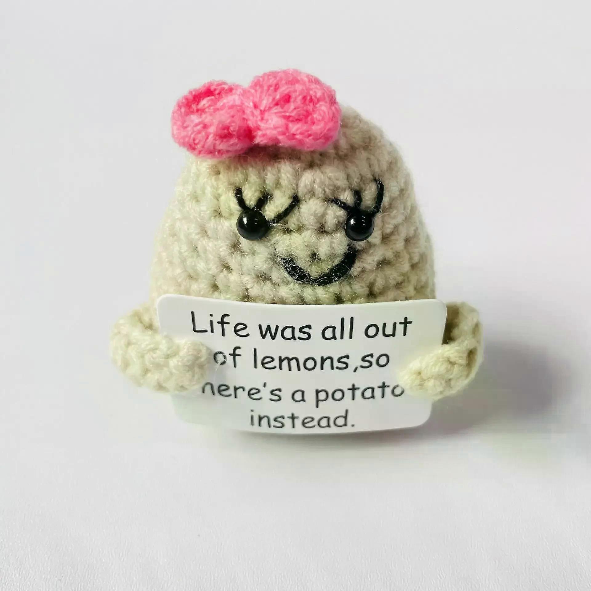 Positive Energy Potato Hug Pocket Mini Handmade Plush Wool Knitting Doll with Card Funny Birthday Gift Home Room Decoration
