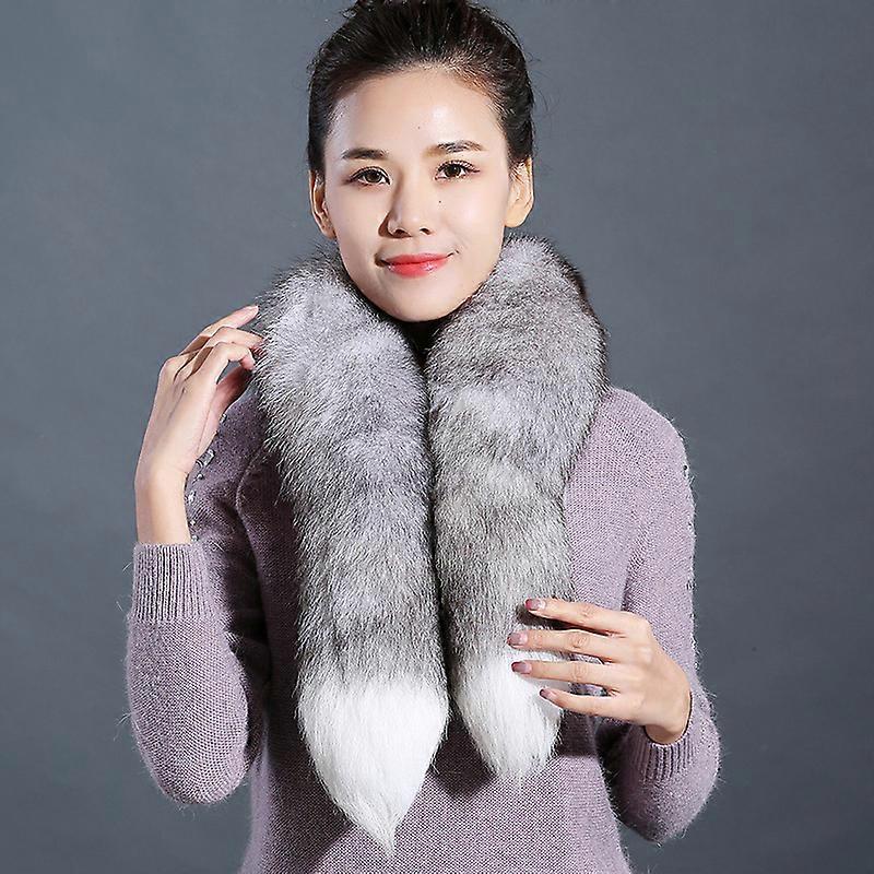 Genuine natural fox fur scarf furry classic Drawstring fox tail Winter Women Men Natural Fur Collar Neck Warmer fur collar 90 cm