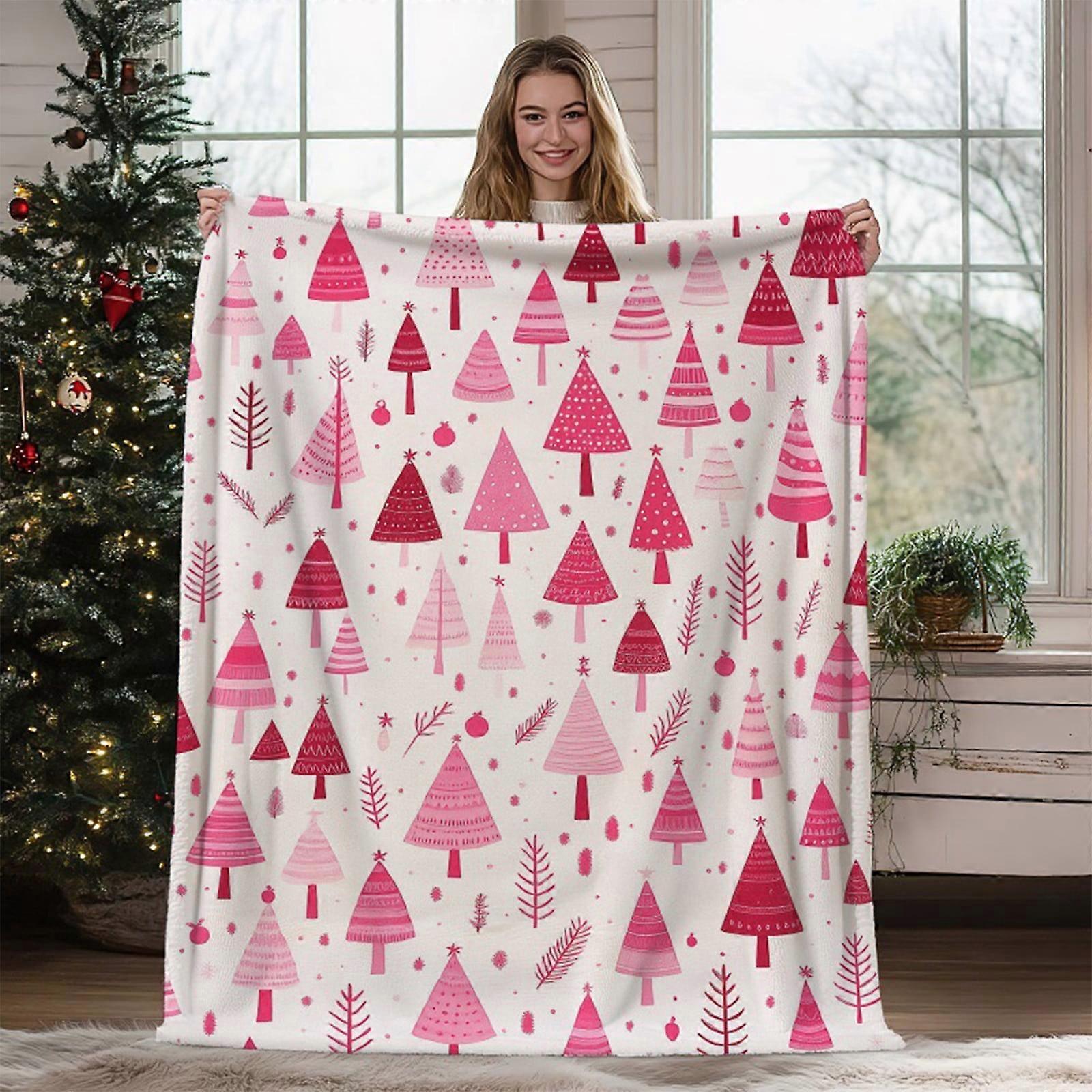 Christmas Throw Blanket 27.5"x39" Flannel Fleece Pink Tree Plush, Soft Warm Lightweight Holiday Decor for Couch Sofa Bed