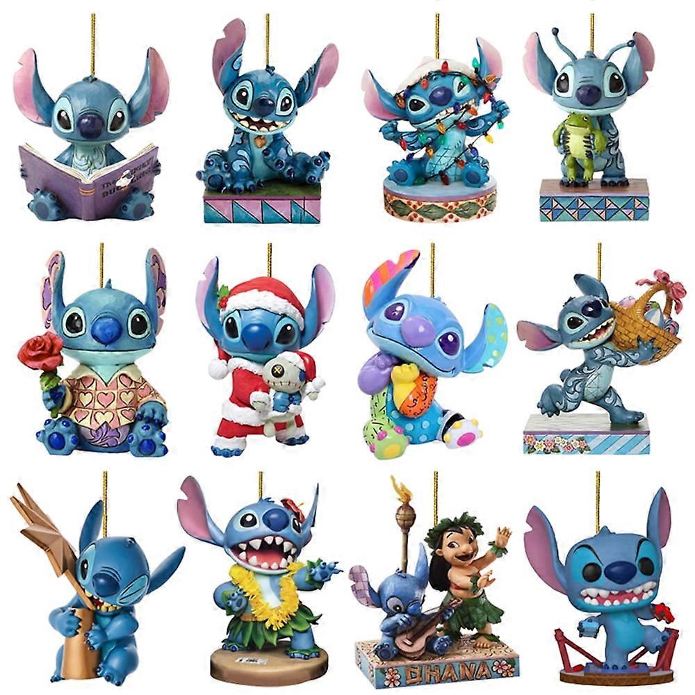 Lilo and Stitch Cartoon Christmas Tree Decoration Car Rearview Mirror Acrylic Flat Hanging Pendant Kids Toy Party Decoration 2D/12 pack