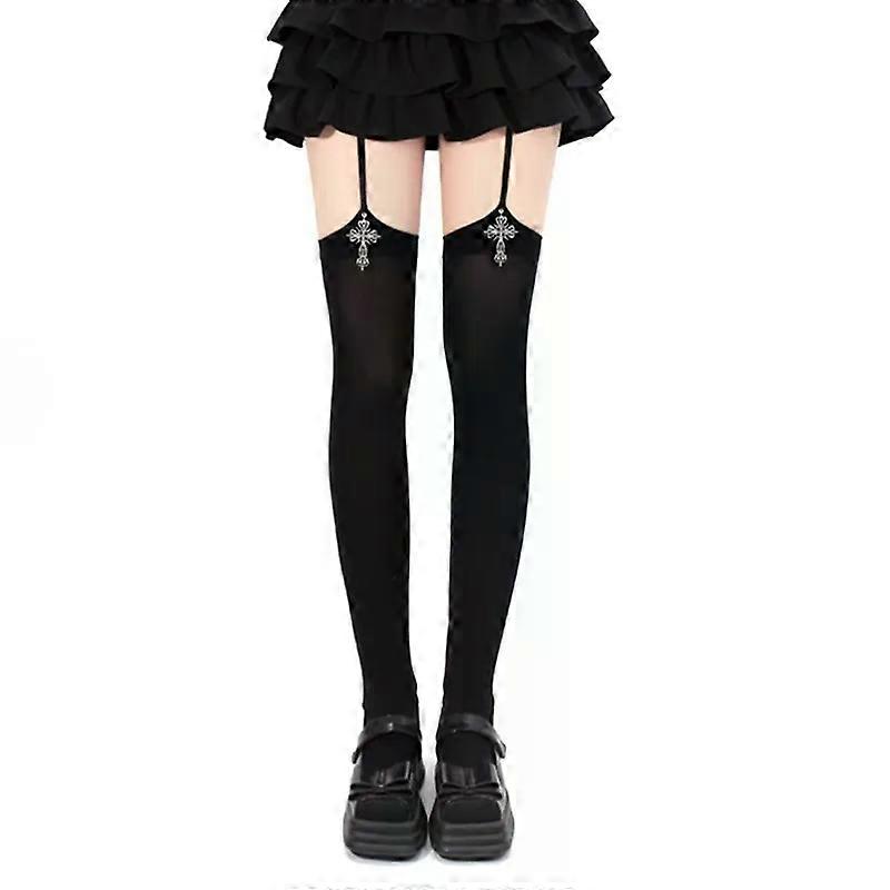 Cross Garter Stockings Black Gothic Women Sexy Lace Suspender Thigh Socks High Tube Underwear Pantyhose Cosplay Tights Lingerie