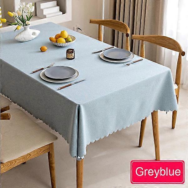Waterproof Tablecloth, Nordic Cotton Linen, Japanese Style Solid Color for Dining & Coffee Table, Greyblue 120x160cm