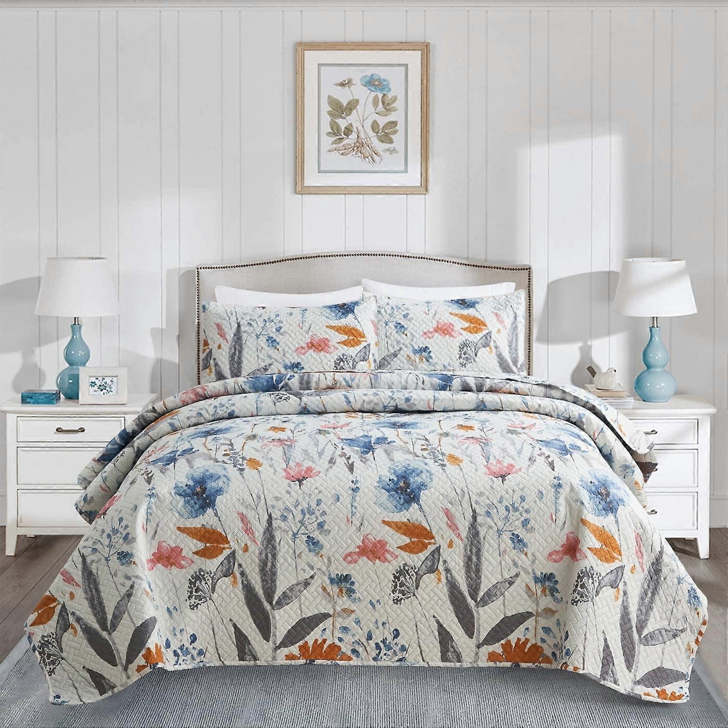 JML 3-Piece Quilt Set with 2 Shams, Soft Microfiber Bedspread Coverlet Set, King, Blue Floral