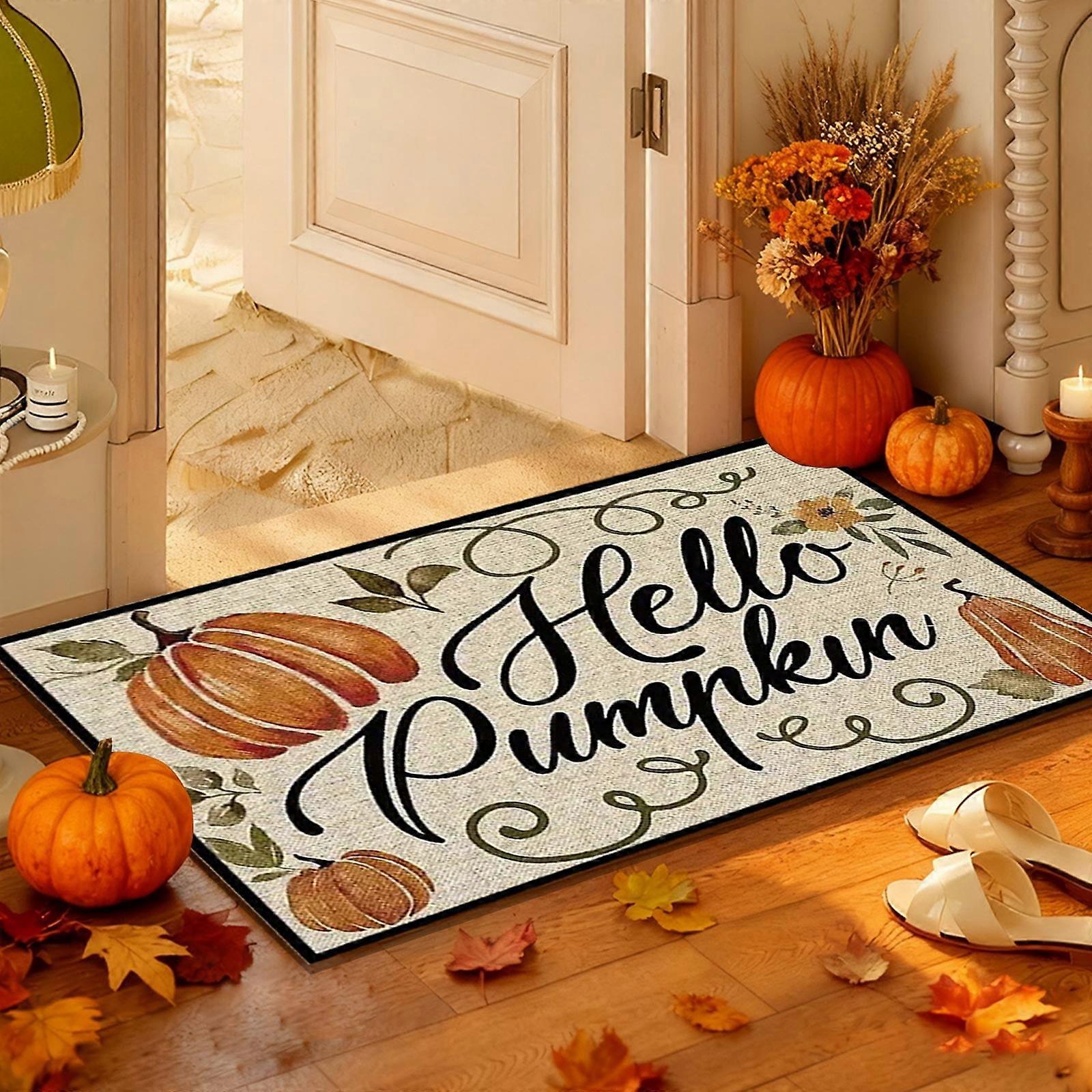 Antqov Fall Welcome Door Mat, 16x24" Washable Thanksgiving Doormat, Maple Leaves Non-Slip Decorative Mat for Indoor Outdoor Entryway