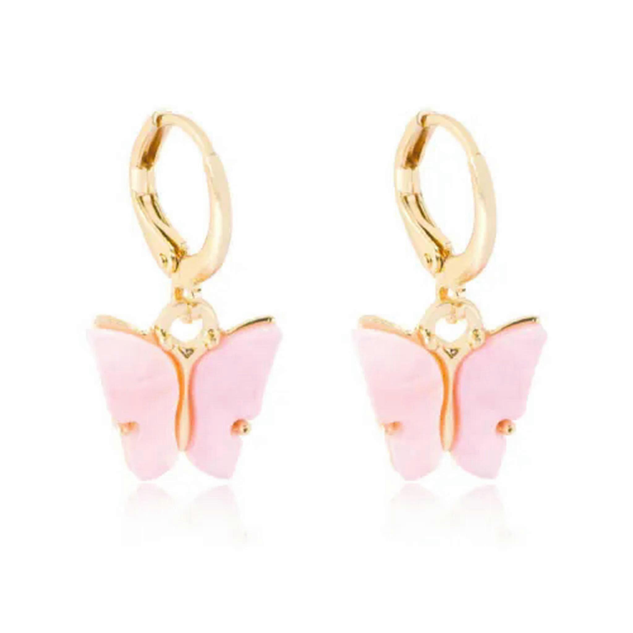 RSAMD Fashion Butterfly Acrylic Insect Earrings Women Boho Dangle Drop Earring Cute-Pink2