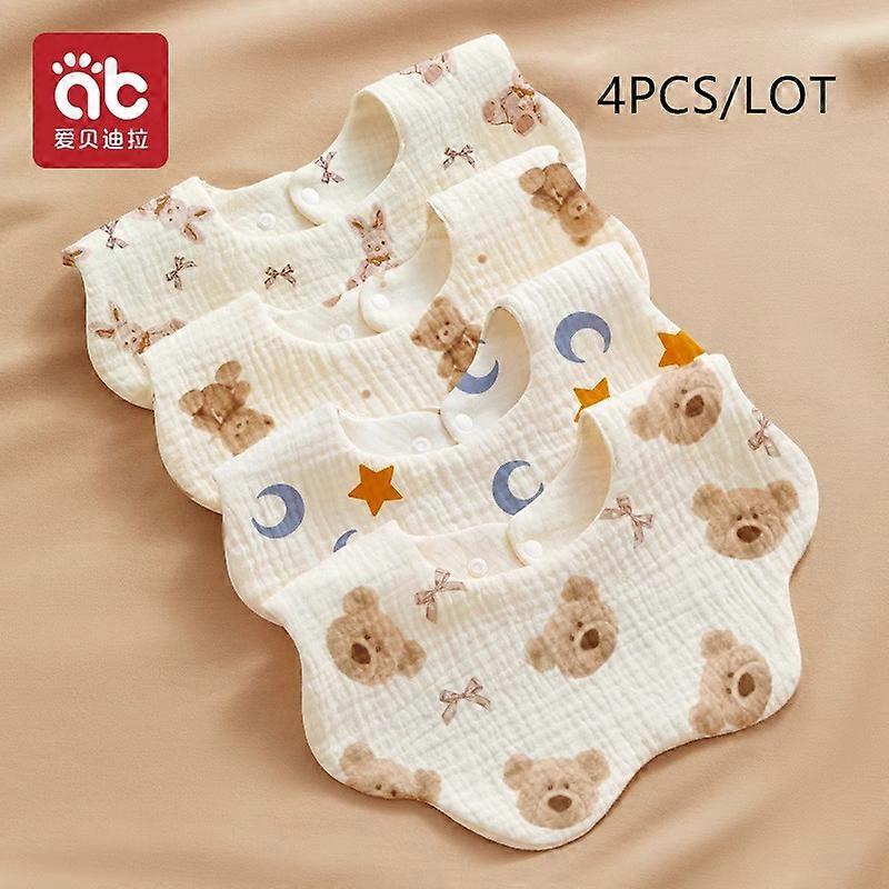 4pcs Baby Cotton Gauze Waterproof Bibs Soft Cartoon Infant Bibs Burp Cloths Bandana Scarf for Boys Girls Feeding Saliva Towel