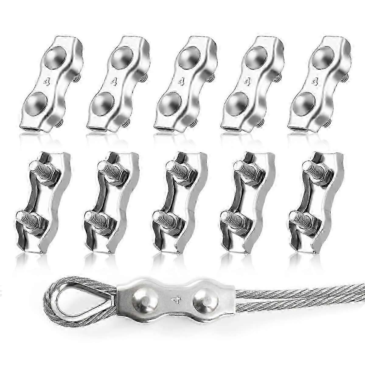 M4 Duplex Cable Tie Clips, 10pcs 304 Stainless Steel Duplex Wire Rope Clips, 4mm Cable Clamps For Wire Rope Clothesline, Sun Sail