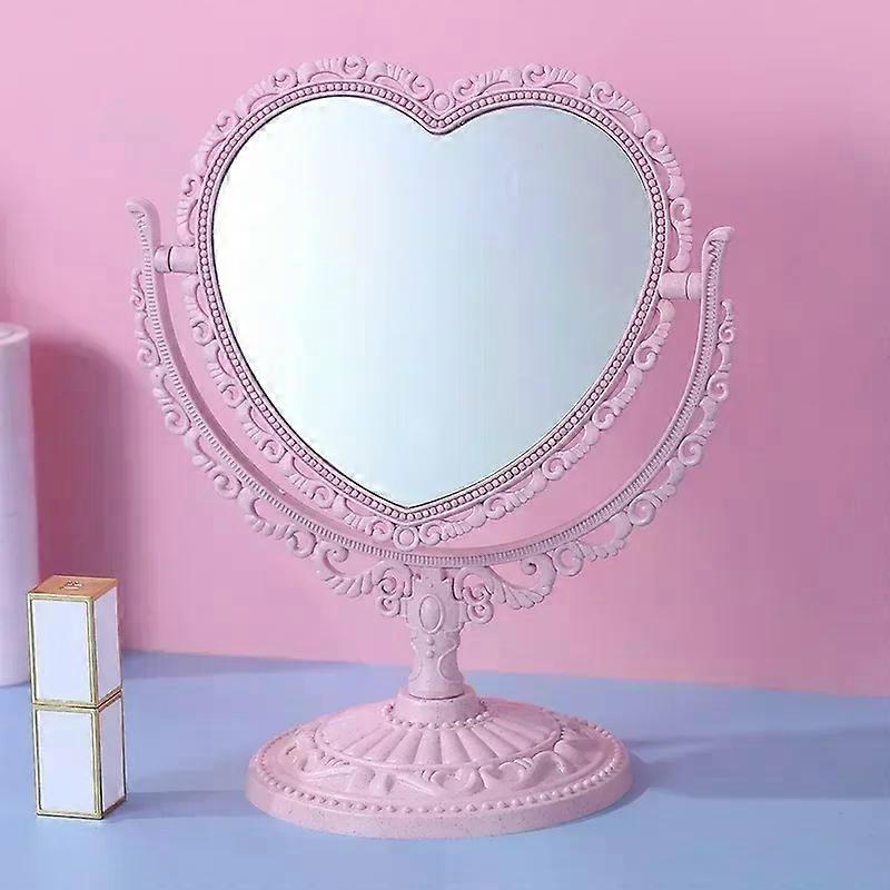 Pink Heart Shape European-Style Retro Make Up Mirror Lovely Girl Oval Princess Cosmetic Creative retro Girls Student Dormitory