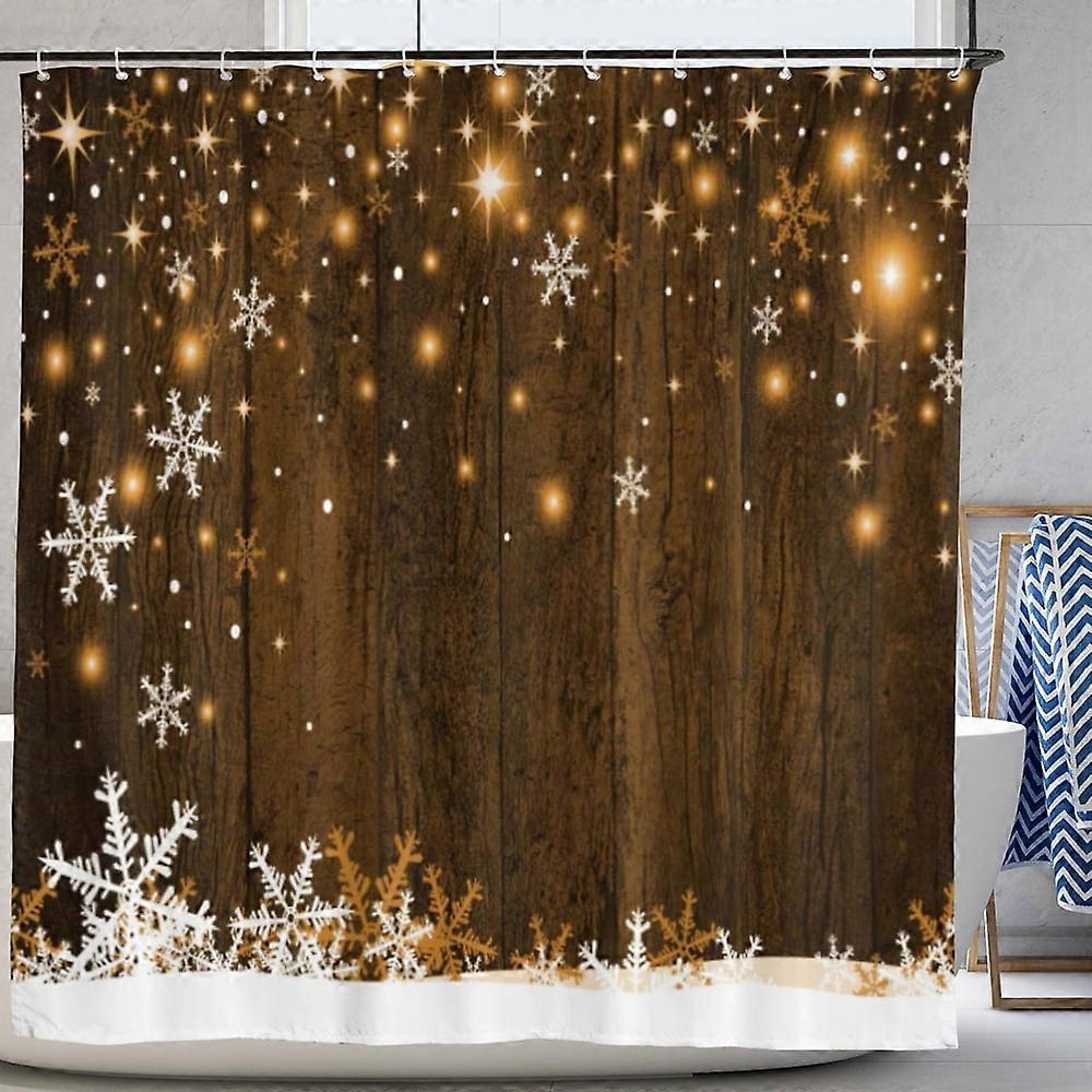 Christmas Shower Curtain Cloth Fabric Bathroom Decor Set with Hooks Snowflakes Bath Curtain 72" W x 72" L
