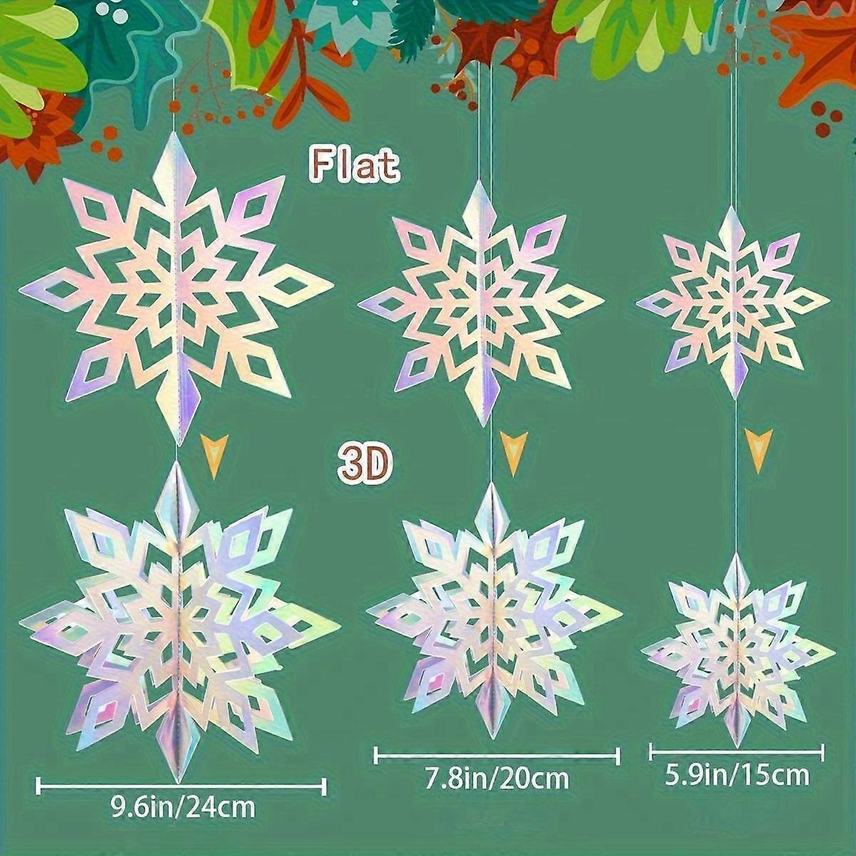 12pcs Iridescent 3D Paper Snowflake Garland - Perfect for Christmas, Frozen Themed Parties - Easy Assembly Hanging Decorations