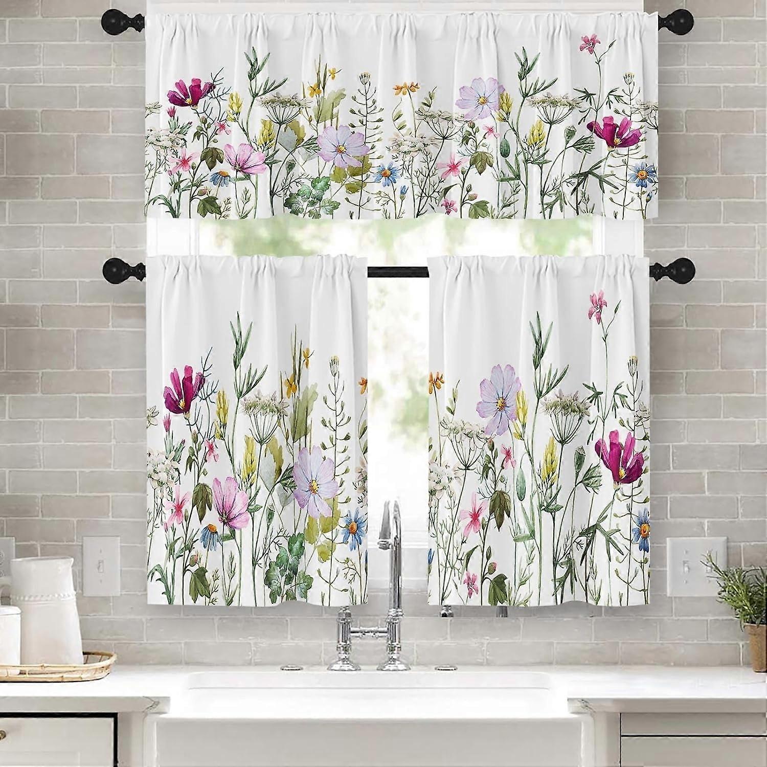 Muqhrev Spring Floral Kitchen Valances, 52" x 18" (3 Panels)