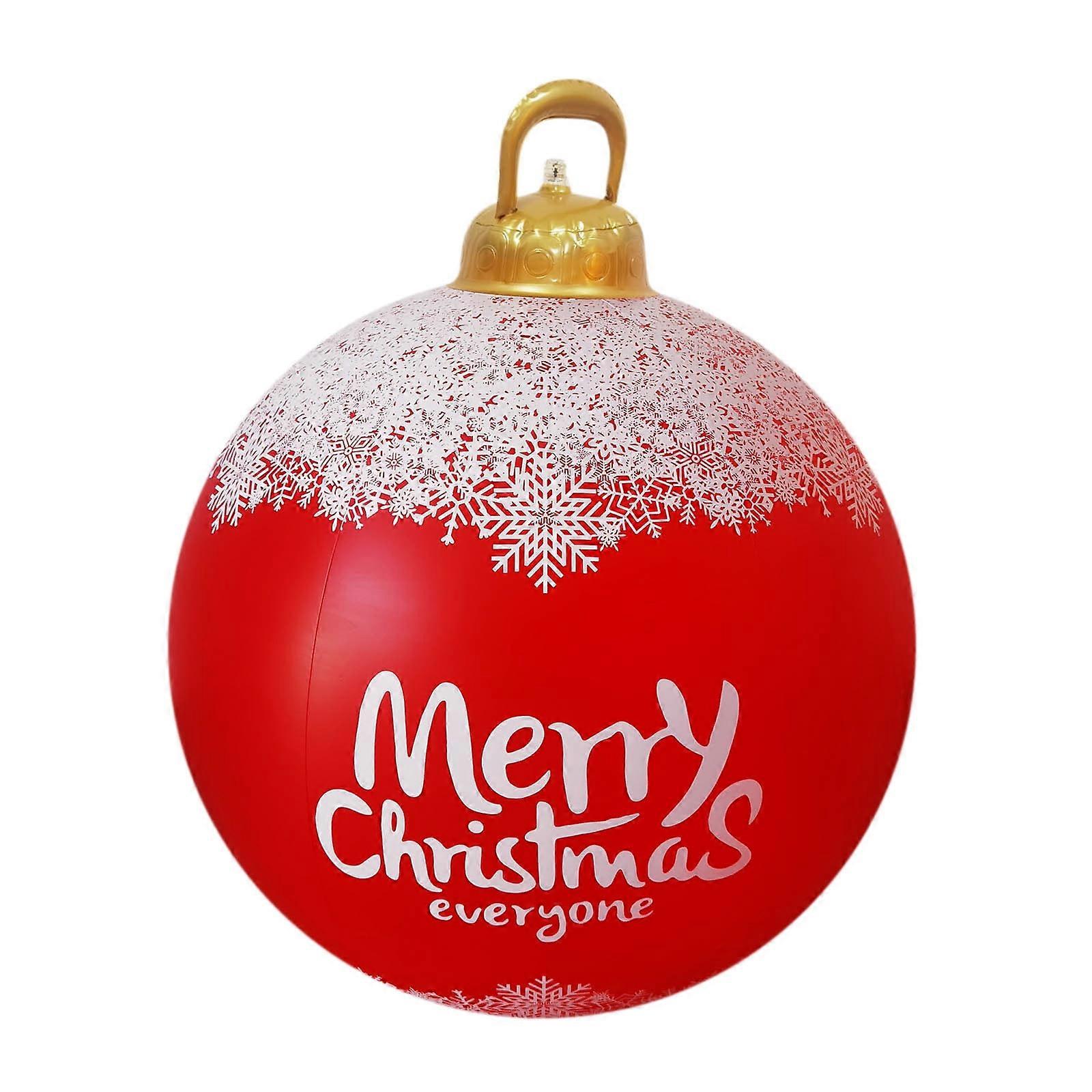 Twfbrm 24" Inflatable Christmas Ball with Lamp - Large Outdoor Holiday Decoration, Snowflake Red PVC Blow-up Yard Ornament
