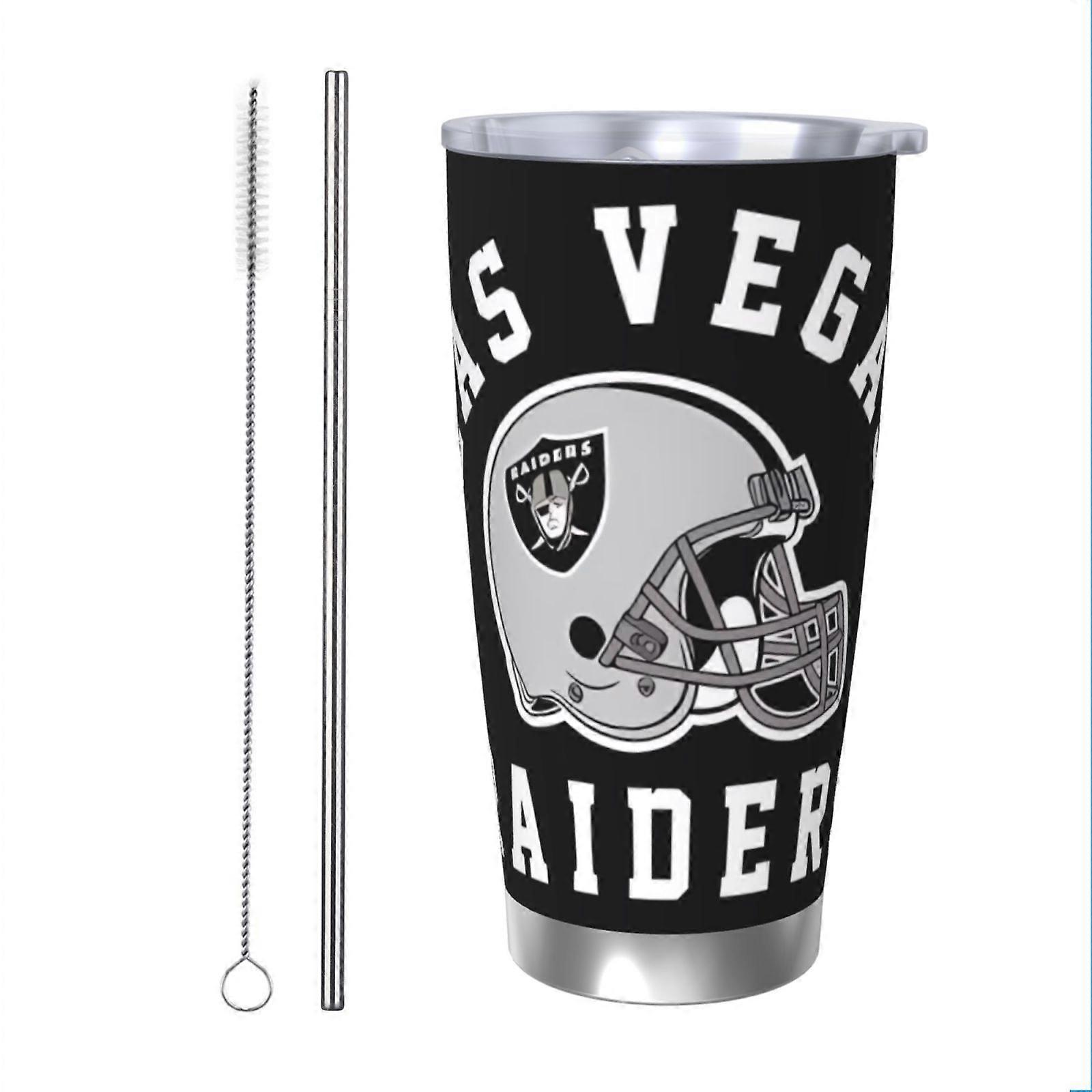 Raiders Football Team Theme 304 Stainless Steel Thermos Cup 20oz with Lid & Straw, Compatible with Car Cup, Hot & Cold Drinks, Coffee, Sports,