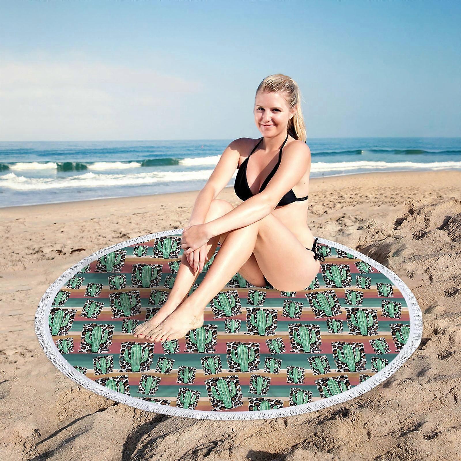 Djunllk Beach Blanket - Microfiber Round Towel Shawl w/ Tassels, Waterproof, Sandproof, Fast Drying, Lightweight, Compatible with Summer Beach