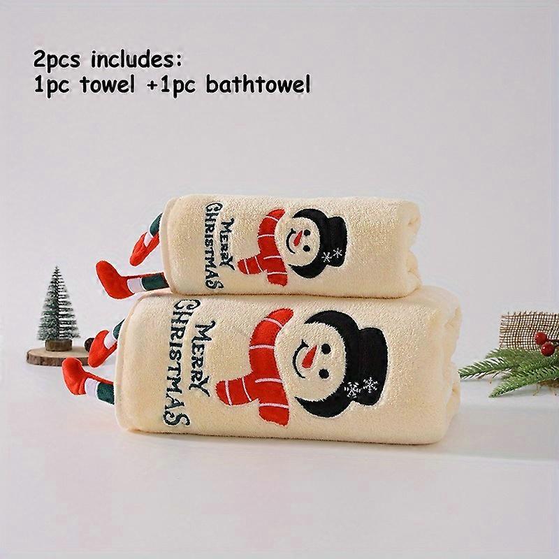2pcs Christmas Family Set with Snowman, Reindeer & Santa Design Towels Ultra-Soft Coral Fleece Bath Towel, High Absorbency Gift
