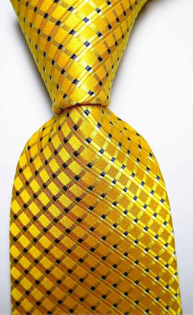New Classic Checks Gold Yellow Blue White JACQUARD WOVEN Silk Men's Tie Necktie