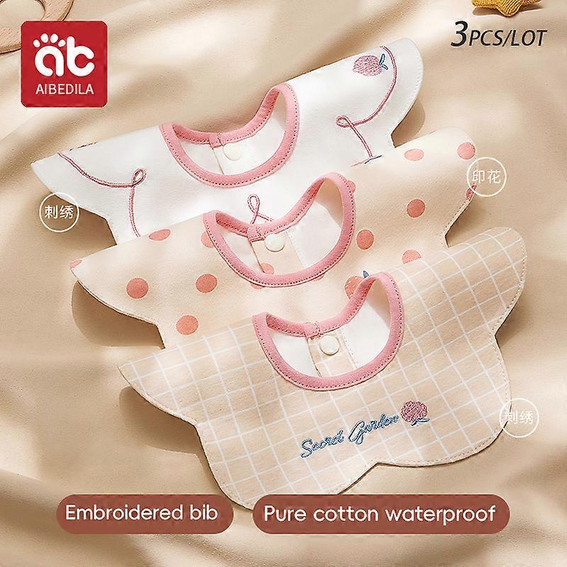 3Pcs Waterproof Bibs for Infants Embroidered Pattern Baby Bibs Comfortable Newborns Bibs Comfortable Cotton Bibs Gift