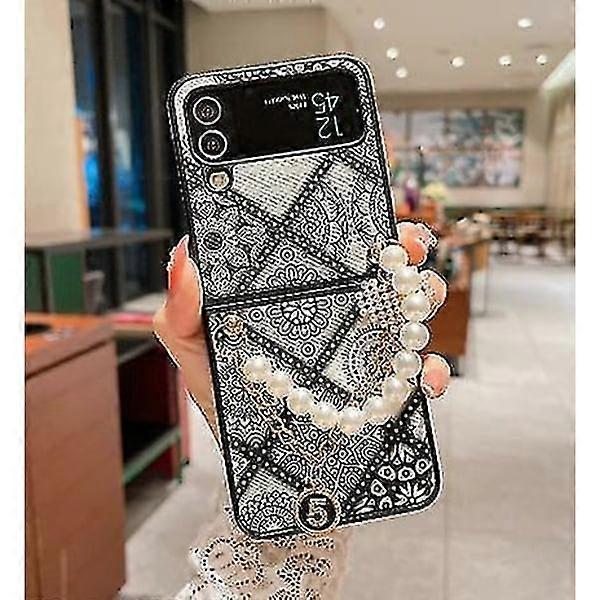 Retro Ethnic Style Phone Case Compatible with Samsung Galaxy Z Flip 4 with Armband Strap Shockproof Z Flip 4 Case D