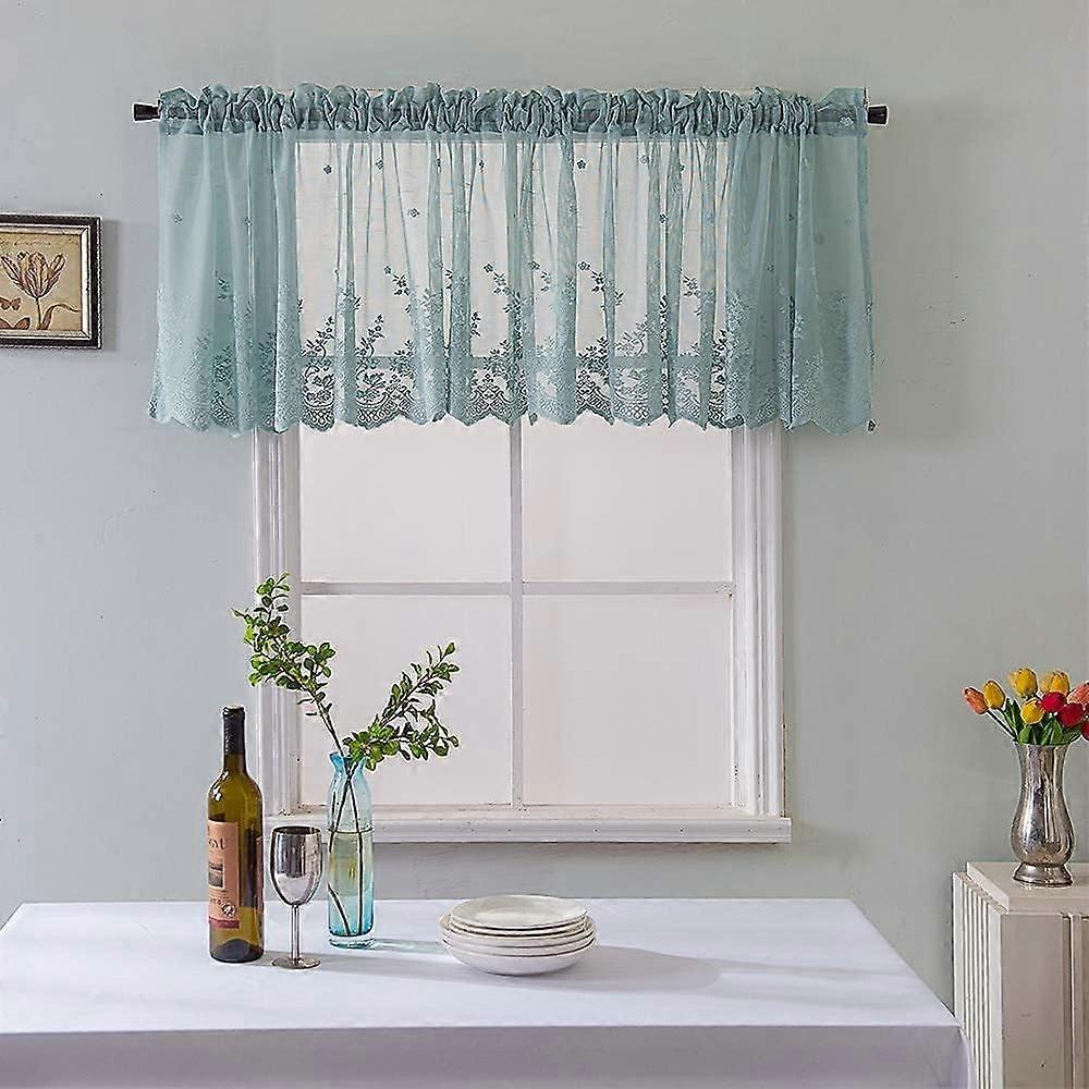 EFINNY Blue Lace Short Curtain for Kitchen Window Jacquard Floral Sheer Curtain Valance for Small Window Rod Pocket Top Tulle 1 Piece