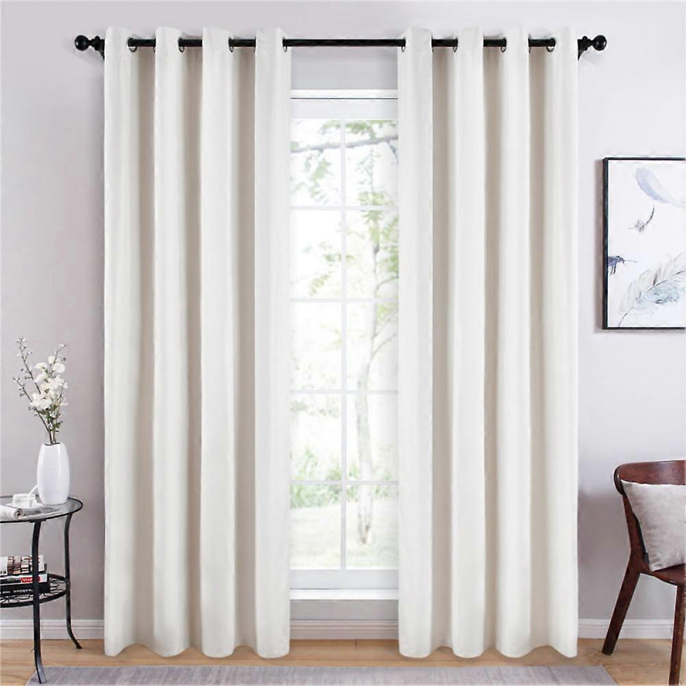 Blackout Linen Curtains 84" Long, Thermal Insulated Grommet Panel, Room Darkening Textured Drapes for Bedroom Living Room, White W100*250cm